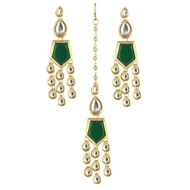 Traditional Back Meena 18k Plated Kundan Tika Earring Set