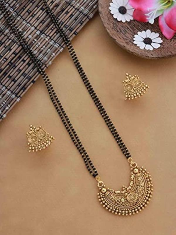 Exquisite one gram gold mangalsutra with traditional beads design. Perfect for special occasions.
