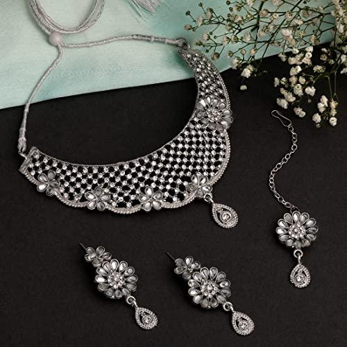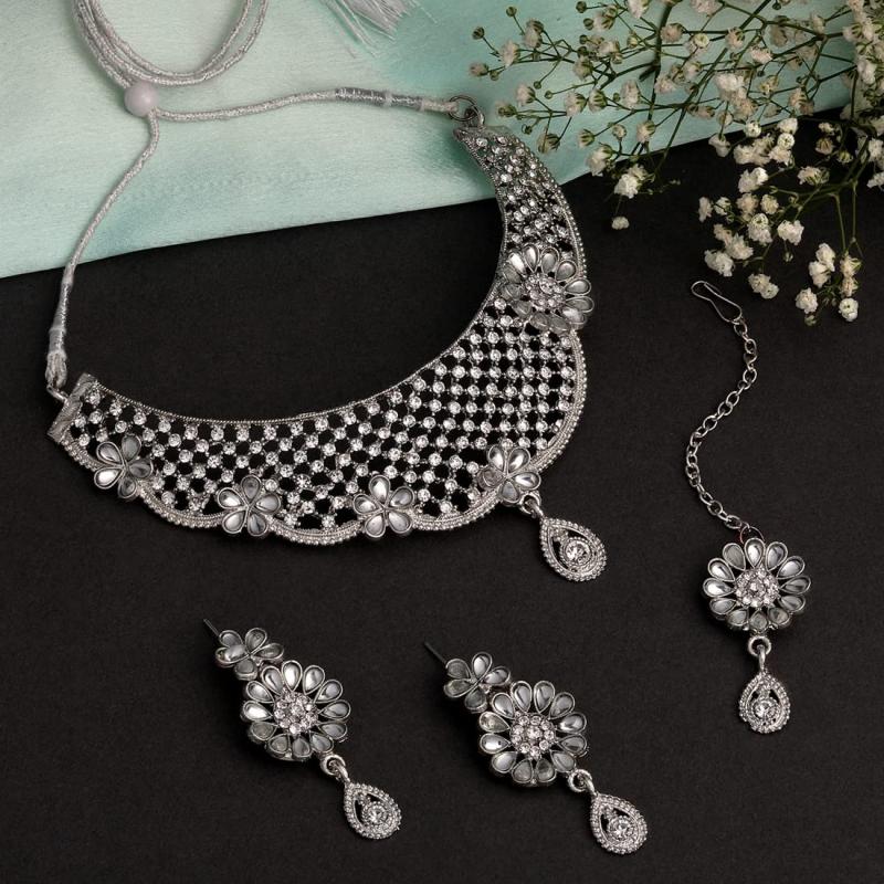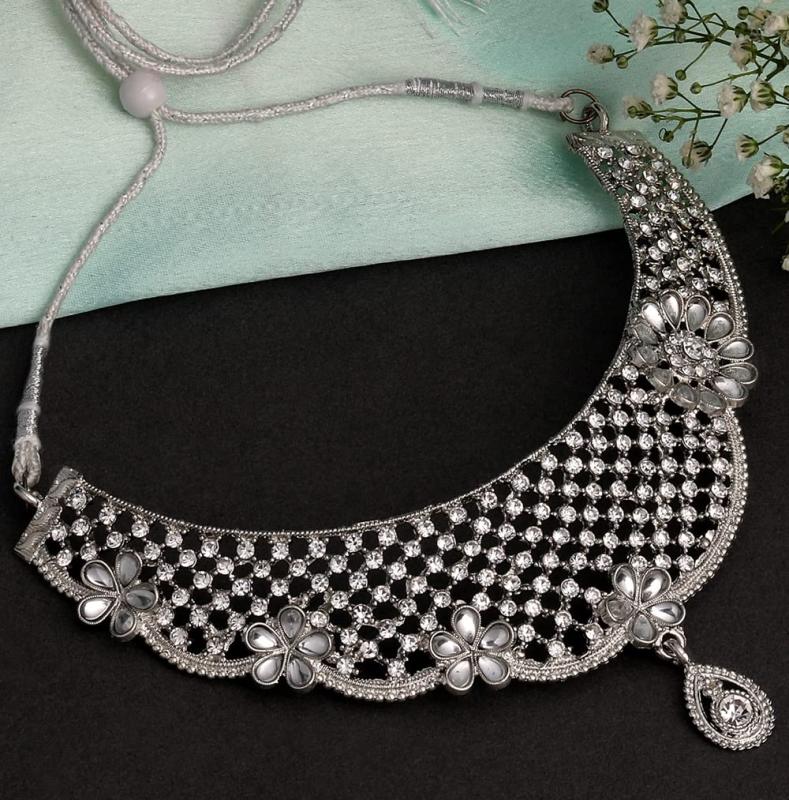 Elegant and stylish choker necklace set with intricate design and diamond embellishments. Perfect for special occasions.