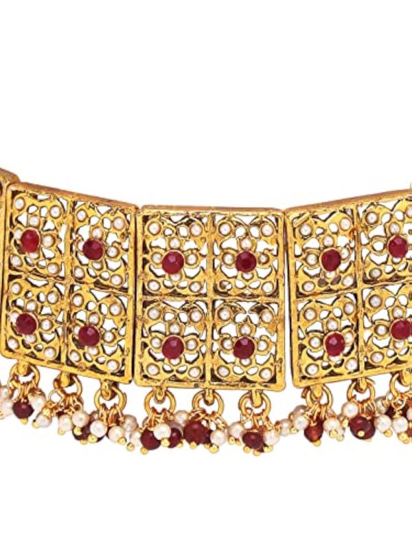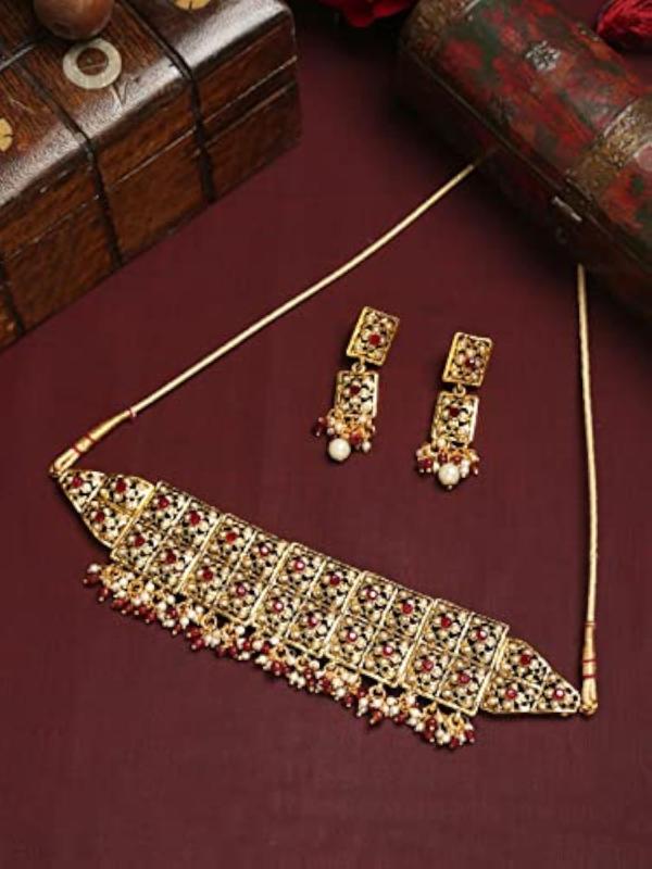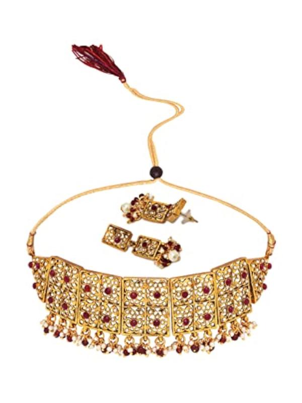 Traditional Choker Necklace Set with Earrings (YBNK_50343)