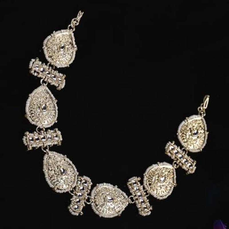 Elevate your ethnic look with this exquisite Kundan Sheeshphool Maang Tikka Matha Patti. Perfect for weddings, parties, and special occasions.