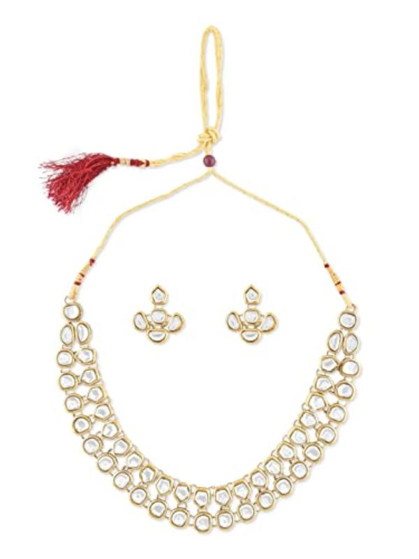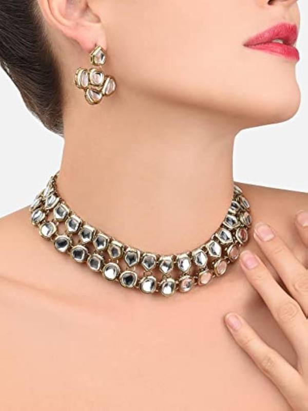 Add a touch of elegance with this stunning Kundan necklace set designed for women. Perfect for special occasions and gifting.