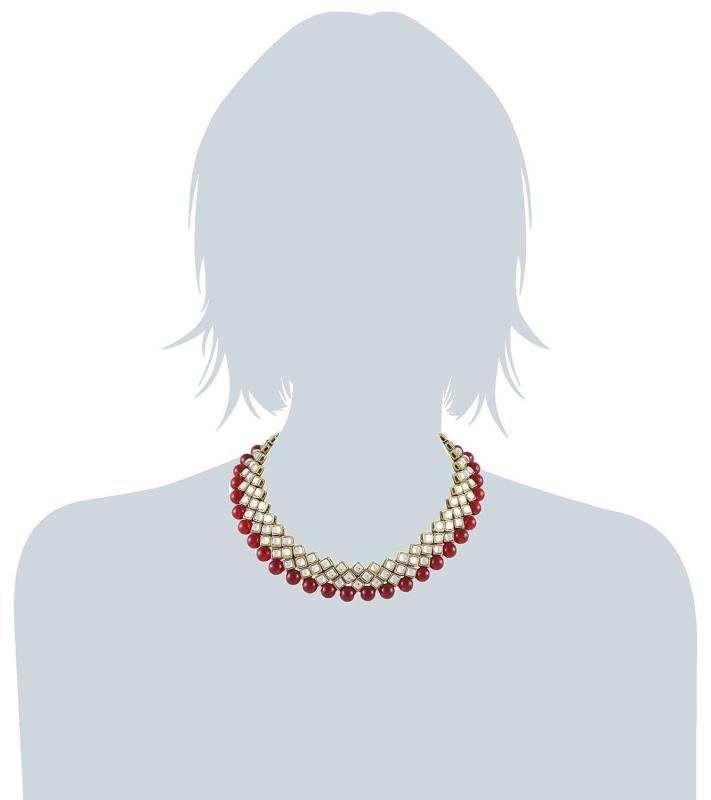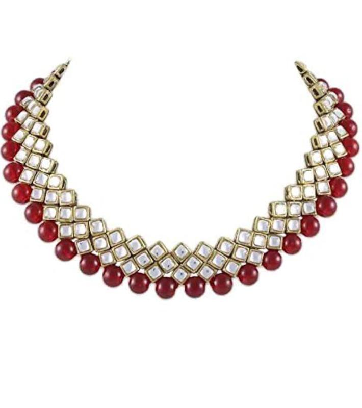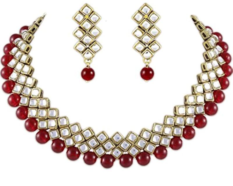 Elegant and exquisite traditional jewelry set featuring a Kundan pearl choker necklace with matching earrings.