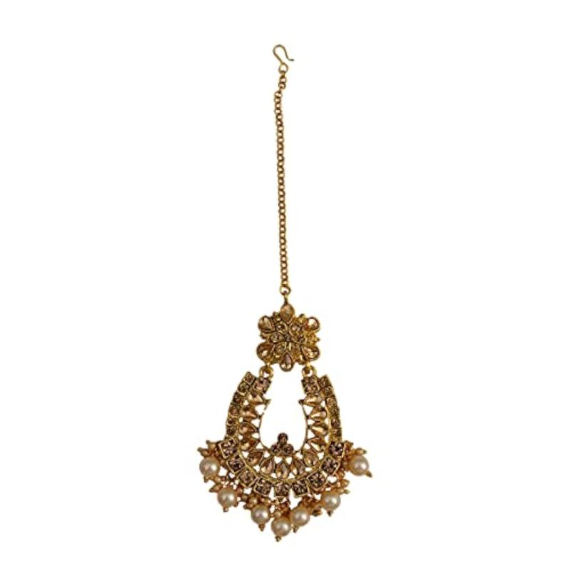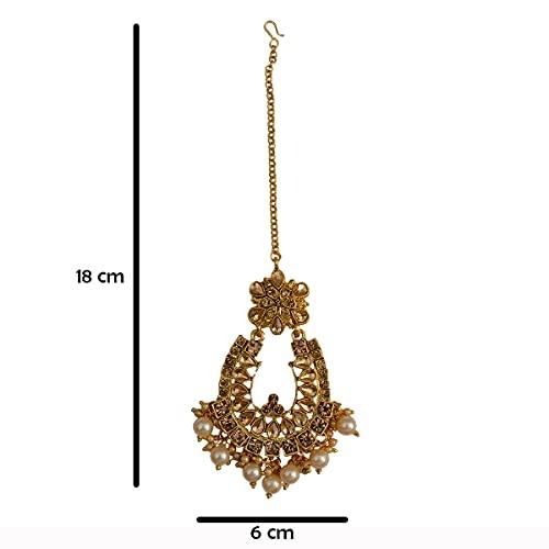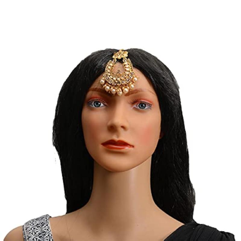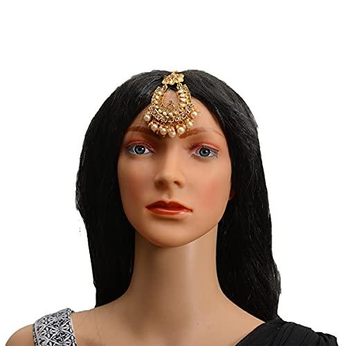 Elegant maang tikka featuring kundan and pearl embellishments for a traditional look.
