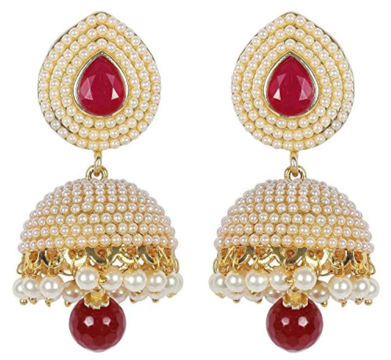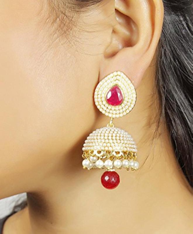 Elegant jhumki earrings with pearl detailing, perfect for traditional occasions