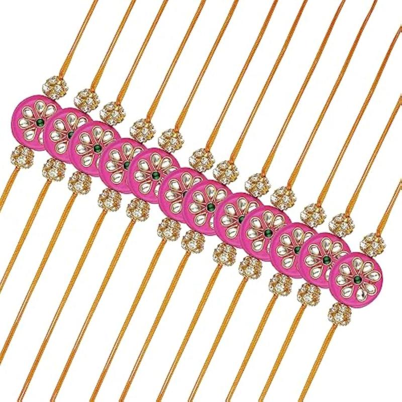Celebrate Rakshabandhan with this set of 20 traditional plated and stylish beaded rakhis for your beloved brother. Includes Roli Kumkum packets for the auspicious occasion.