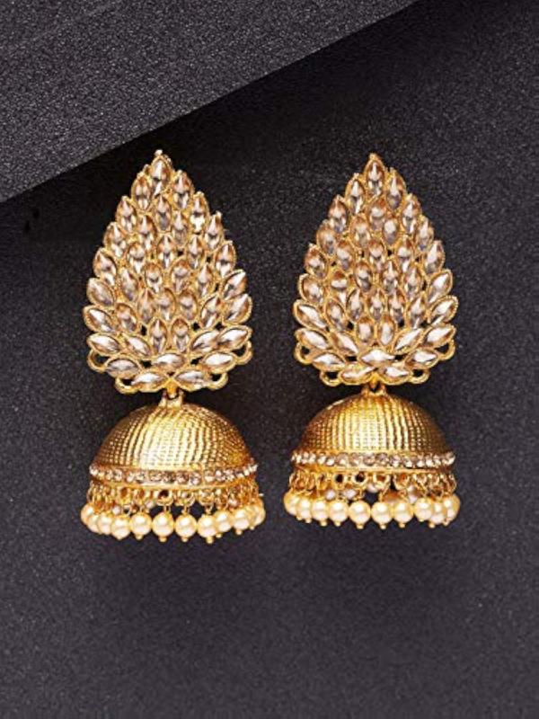 Elegant pearl jhumka earrings with a traditional touch, perfect for all occasions.