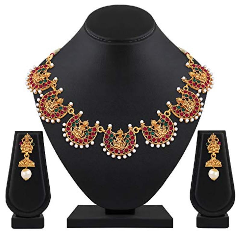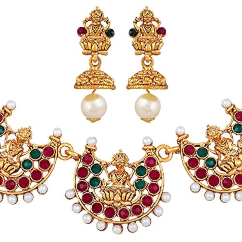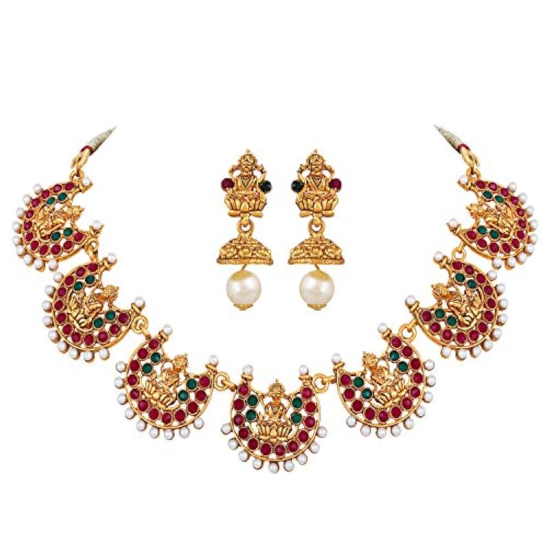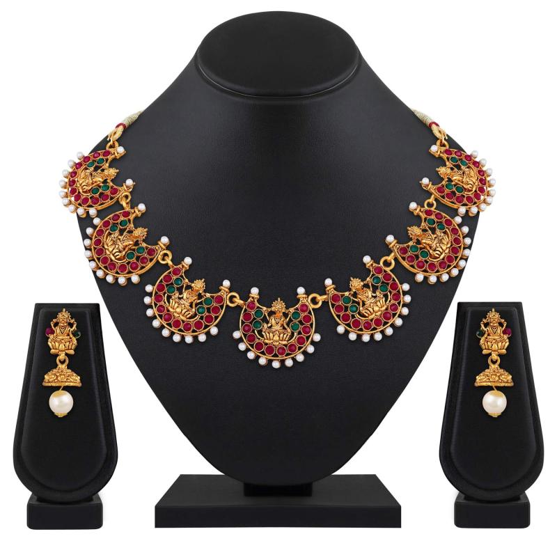 Elegant temple necklace set featuring intricate designs and choker style plated jewellery.