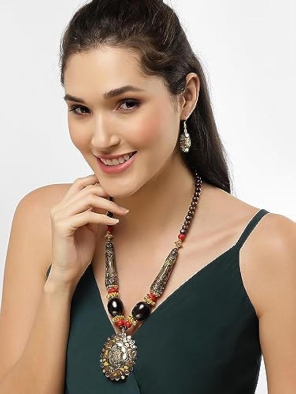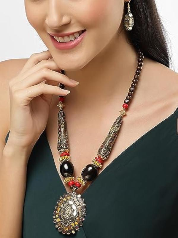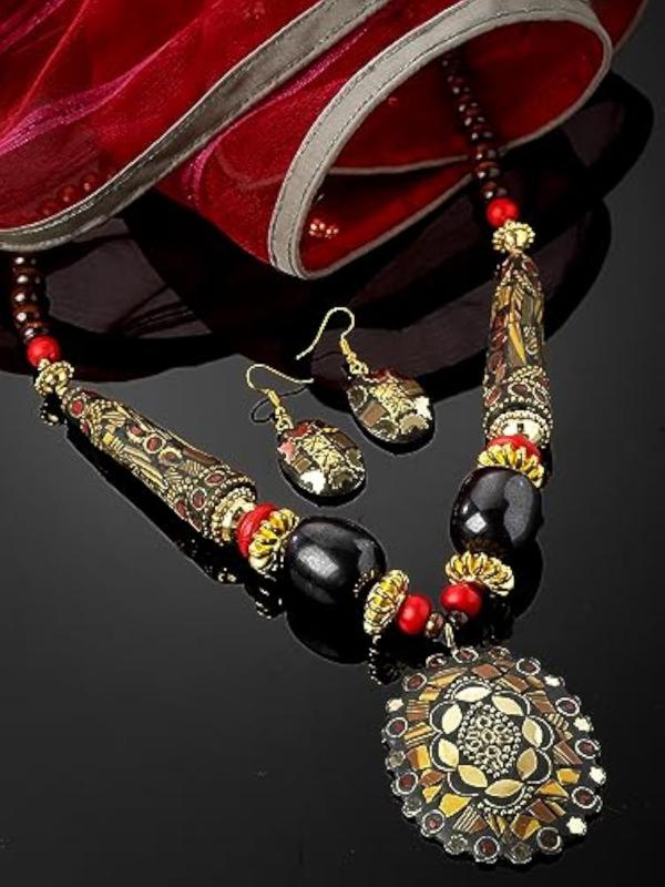 Elegantly crafted necklace set inspired by traditional Tibetan designs.