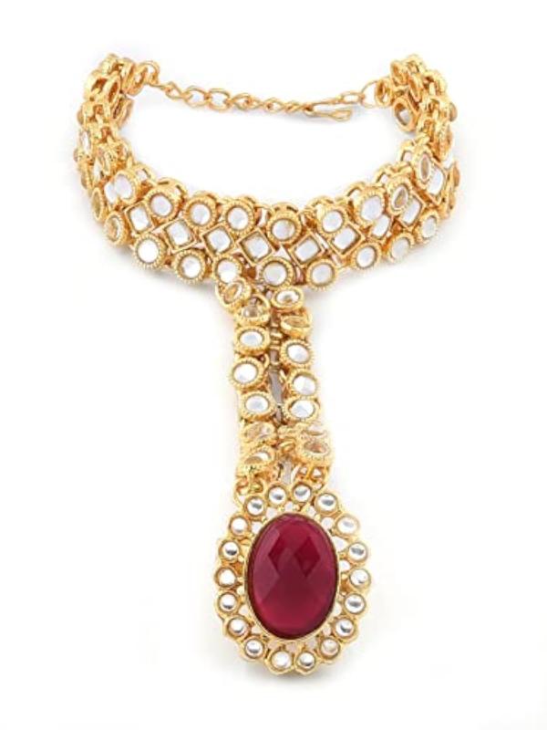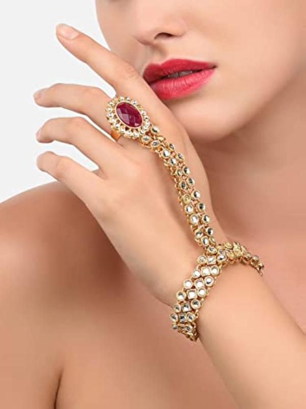 Elegant traditional tone kundan ring bracelet designed for women. Perfect accessory for special occasions.
