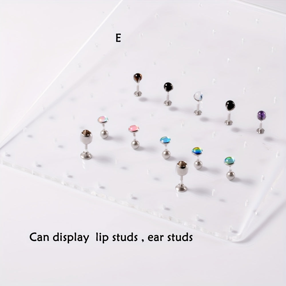 This multifunctional display board is perfect for showcasing earrings, navel, tongue, lip, and nail jewelry while keeping them dust-free.