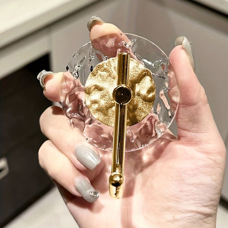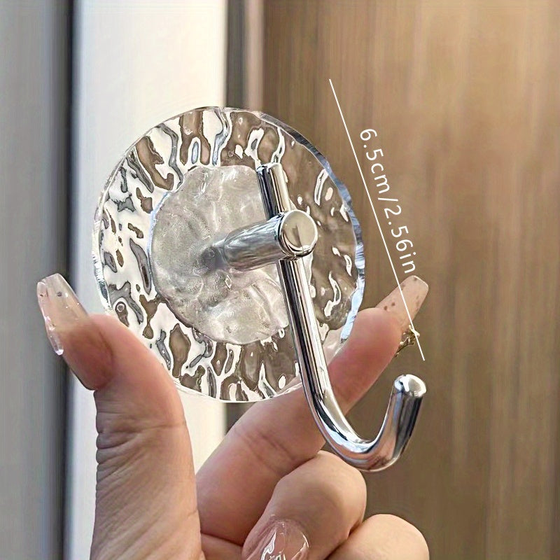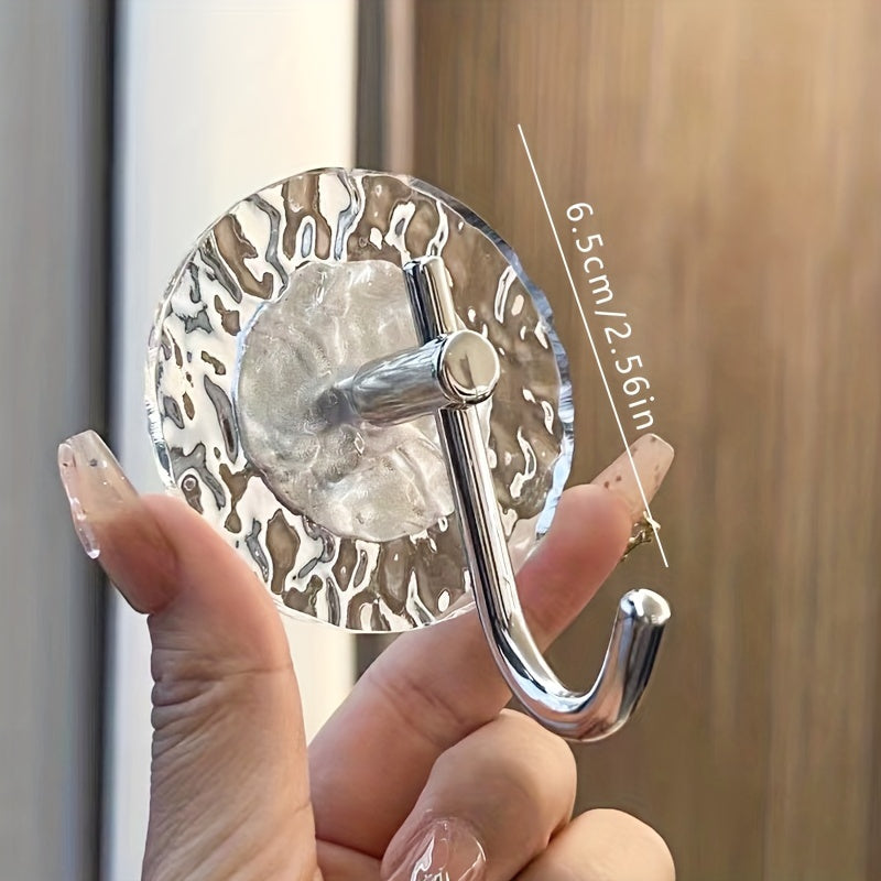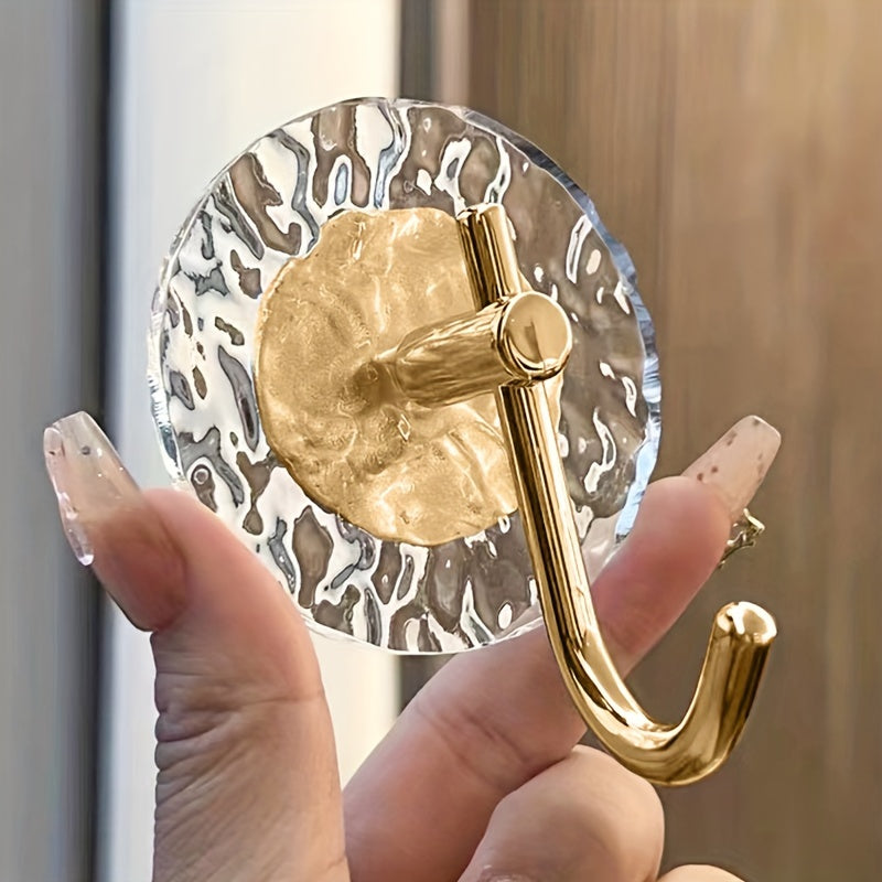This transparent plastic bathroom hook features a golden water ripple pattern in silver, no punching needed.