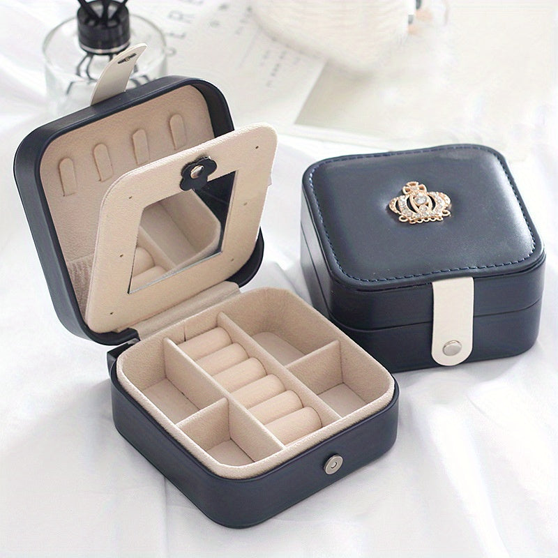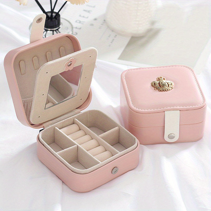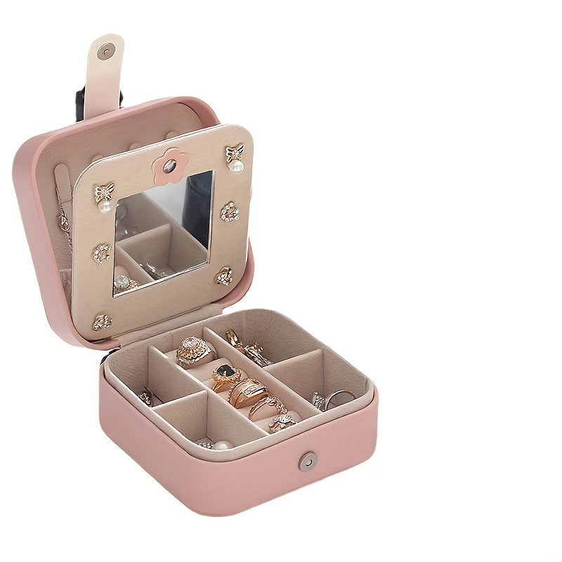 Keep your earrings organized and secure while traveling with this portable jewelry box. Made of leather, this small jewelry storage bag is perfect for earstuds and earrings.