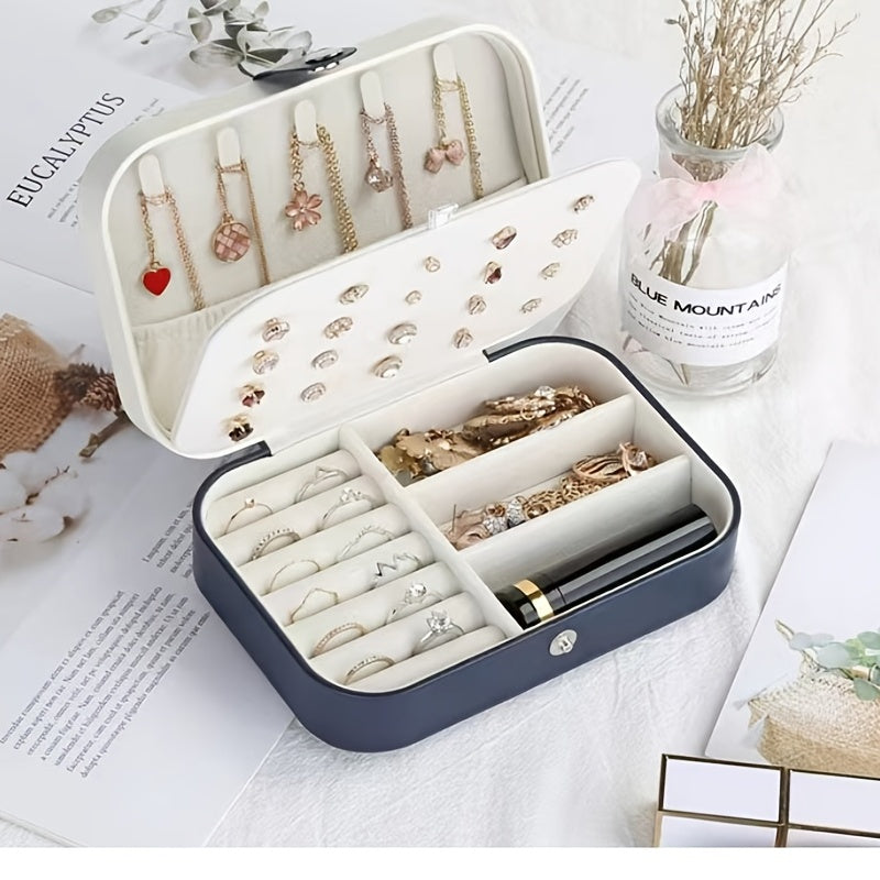 Keep your jewelry organized and safe while traveling with this large capacity storage box. Perfect for earrings and necklaces.