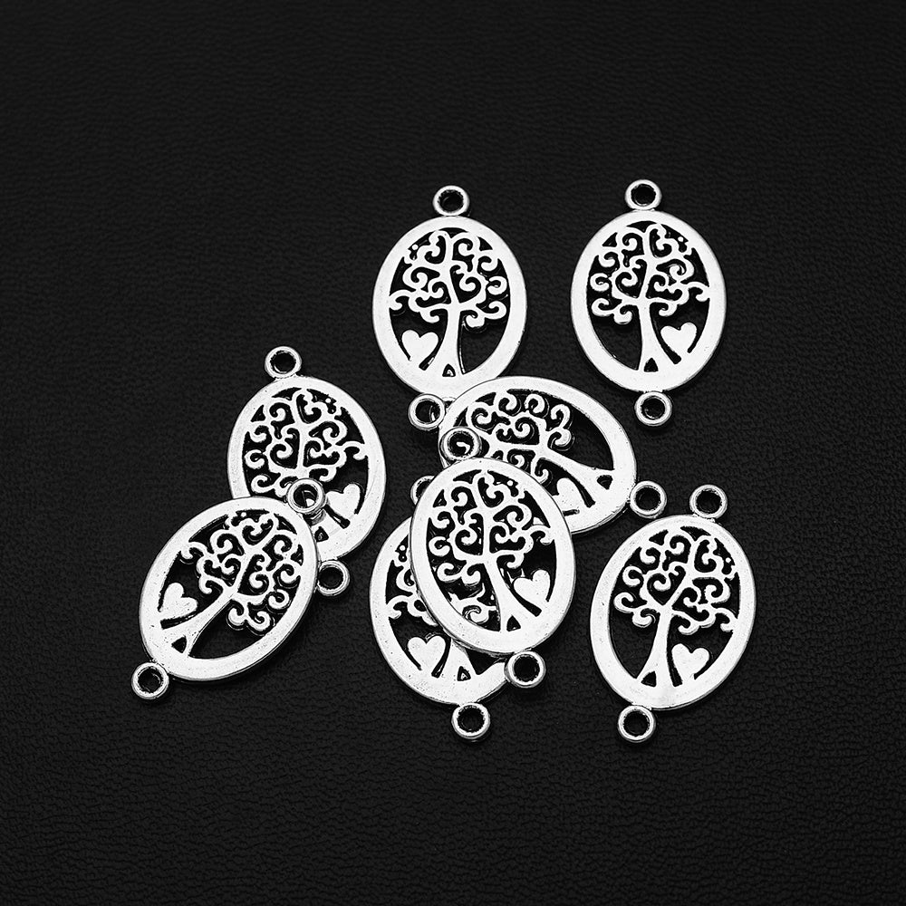 Get this set of 10 antique silver plated Tree of Life charms and heart pendants for your DIY jewelry projects.