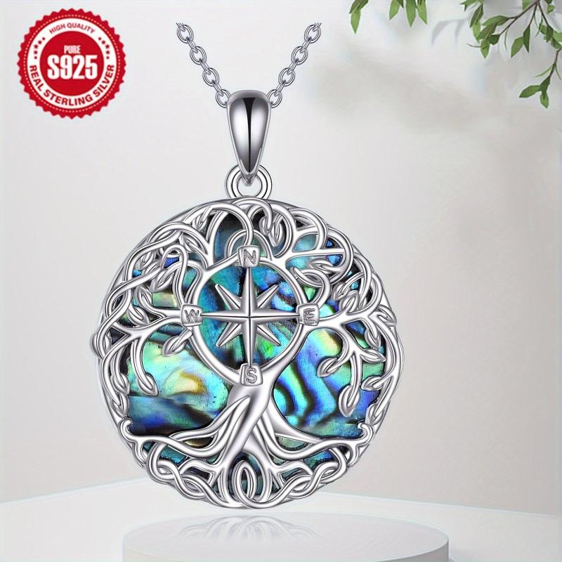 This sterling silver necklace features a Tree of Life design with a compass pendant adorned with abalone shell. A beautiful Celtic jewel to symbolize balance and harmony.