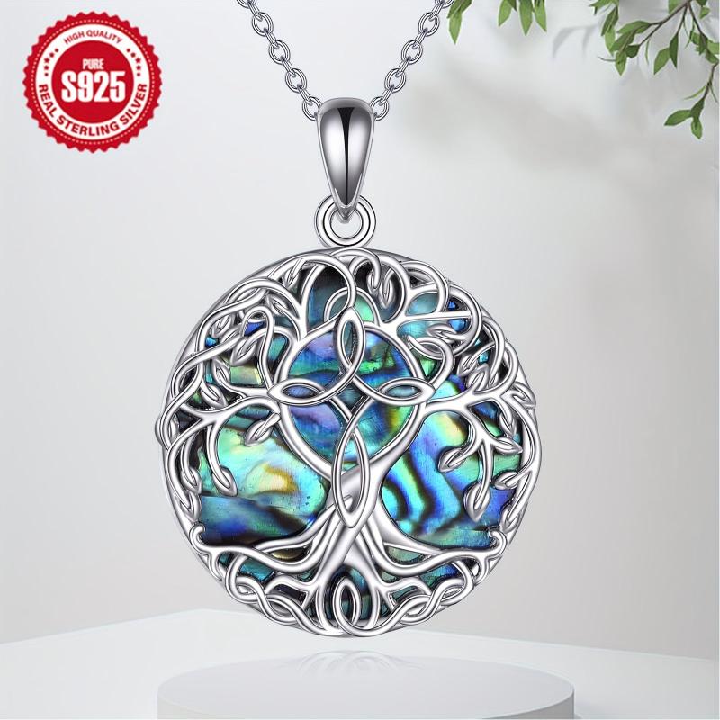 This stunning Tree of Life necklace features a sterling silver infinity cross pendant with beautiful abalone shell inlay. It is the perfect piece of Celtic jewelry for both women and men.