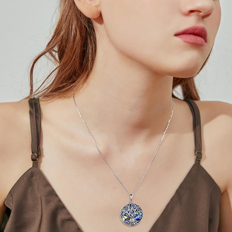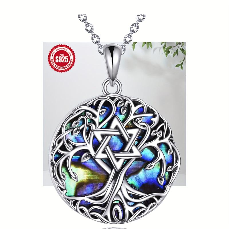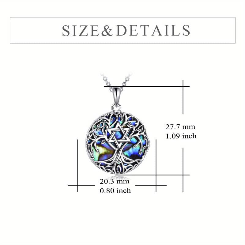This stunning Tree of Life necklace features a Star of David design adorned with abalone shell, perfect for both women and men.