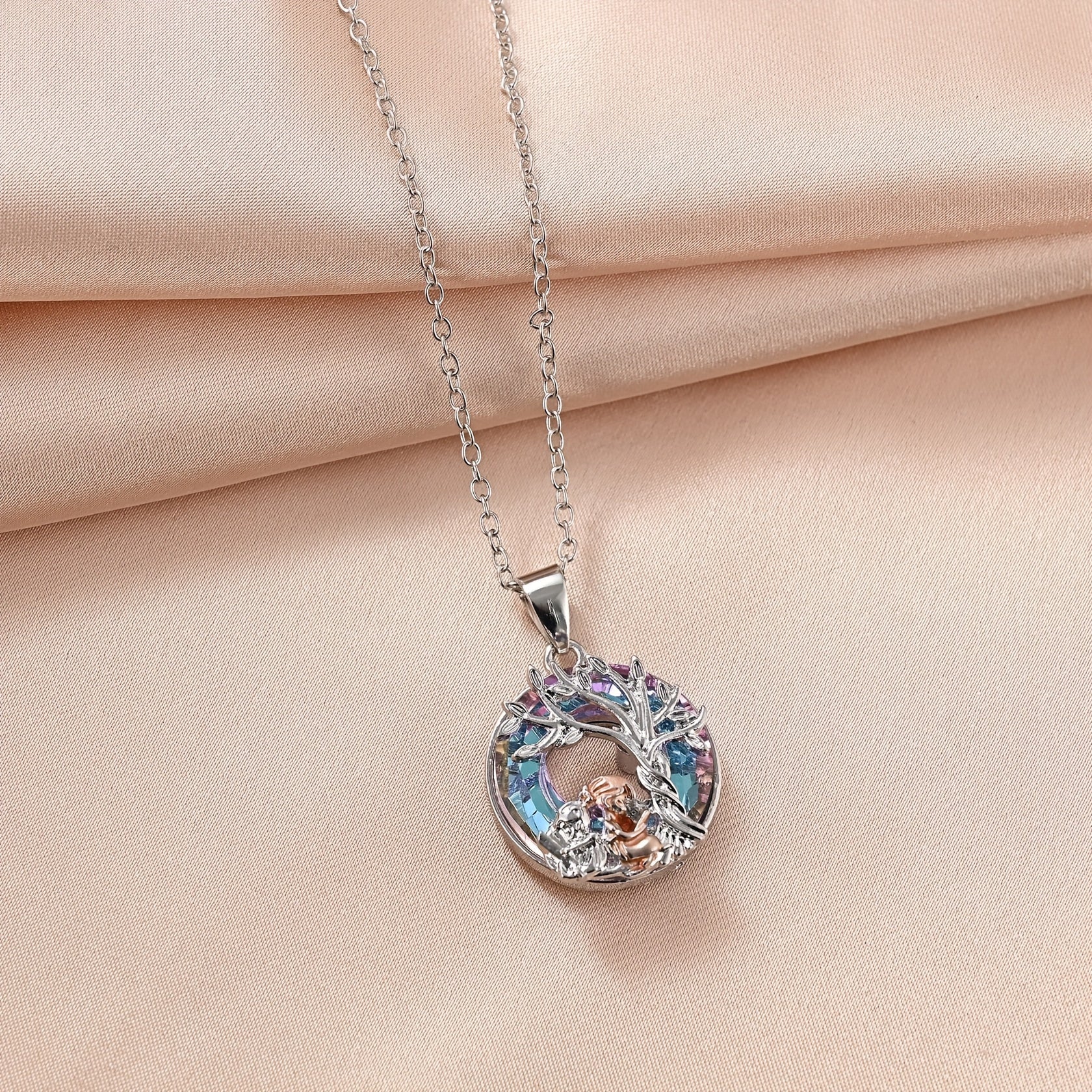 Beautifully crafted Tree of Life necklace with colorful crystals, a perfect Thanksgiving gift for your sister or daughter.