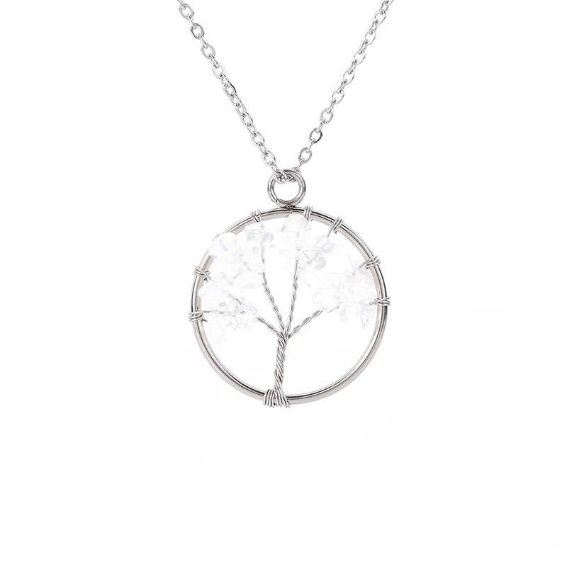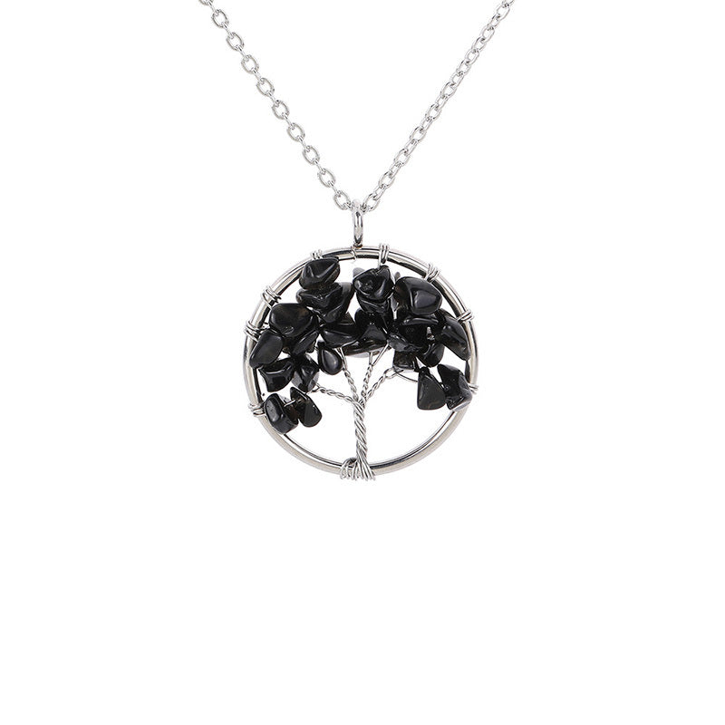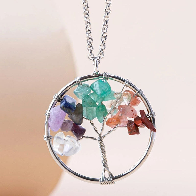 This beautiful pendant necklace features a Tree of Life design with natural healing crystal stones. It's a stunning piece of jewelry that brings positive energy and style to your look.