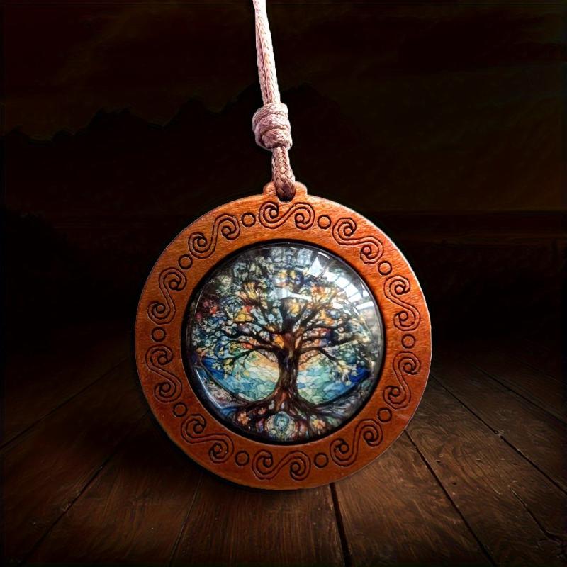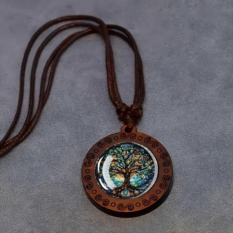 This wooden pendant necklace features a Tree of Life design, making it a meaningful accessory. The adjustable rope chain provides a customized fit for both men and women.