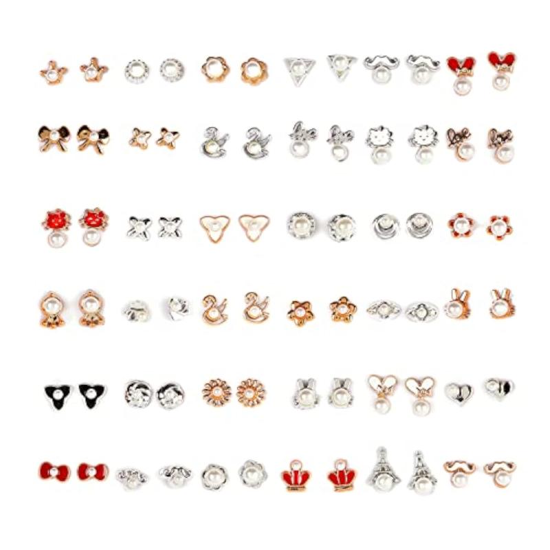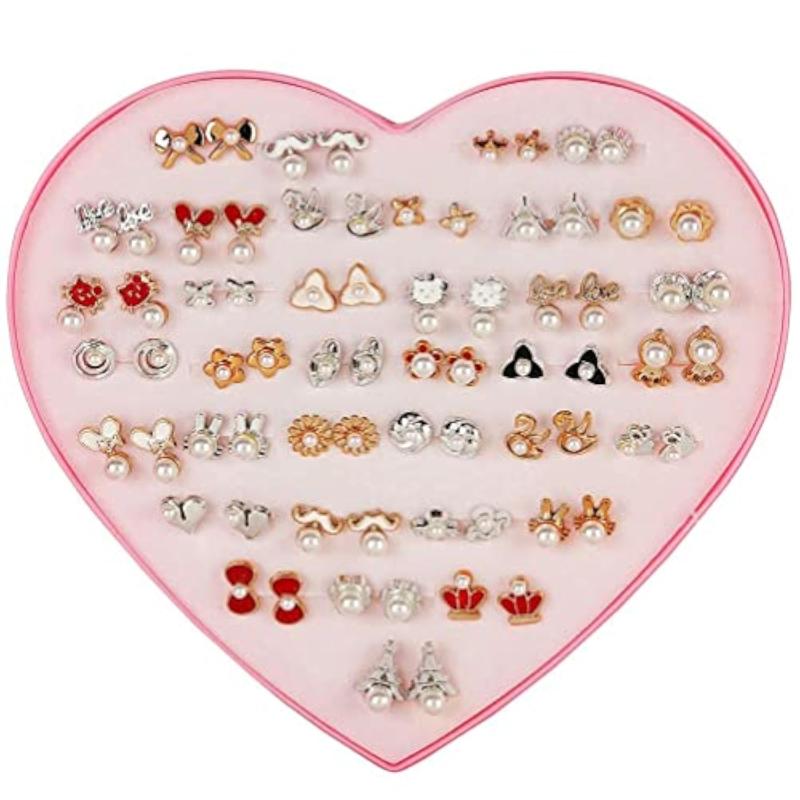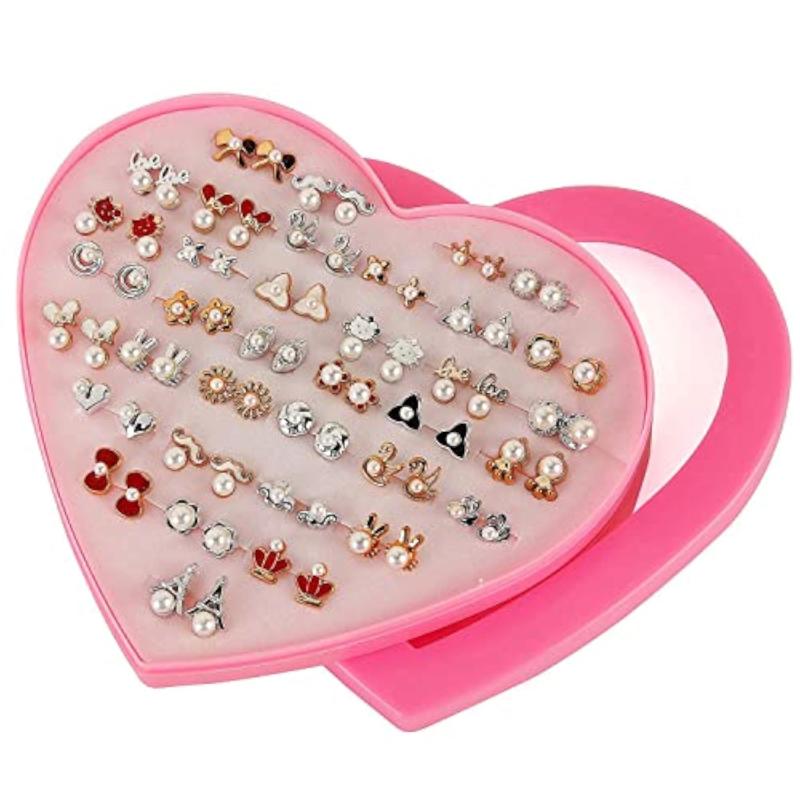 Elevate your style with this set of 36 pairs of stylish non precious metal earrings featuring multicolour heart box design. Perfect for everyday wear or special occasions.