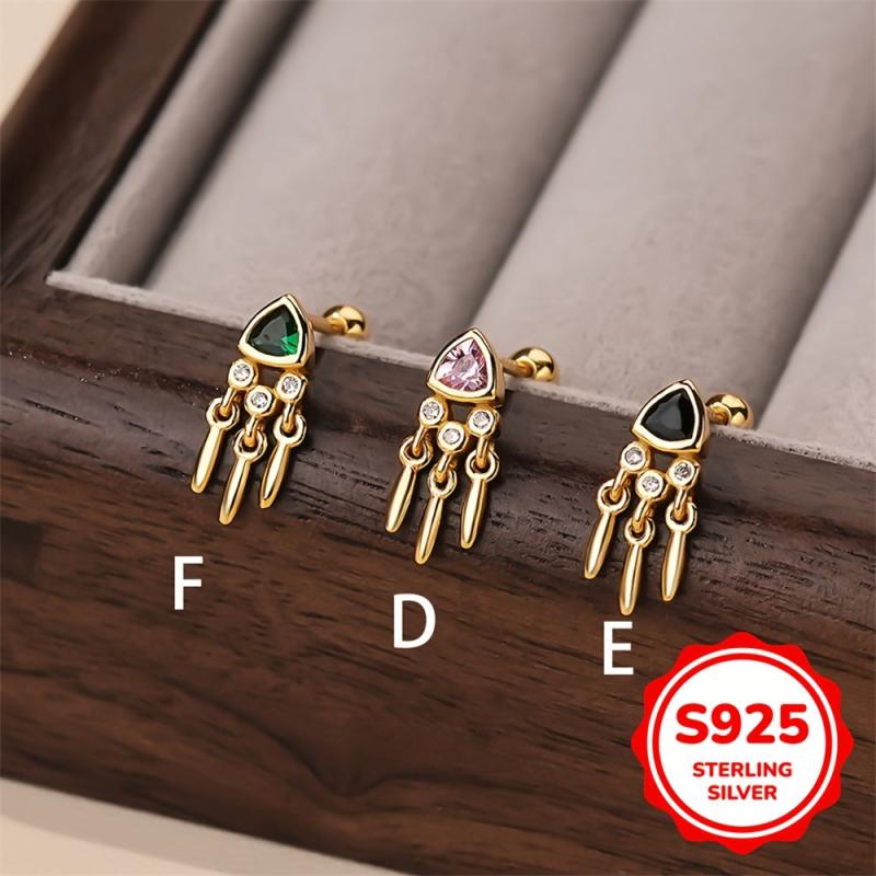 These geometric triangle earrings are crafted from 925 sterling silver and feature a stylish zirconia tassel design that is perfect for all seasons.