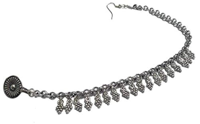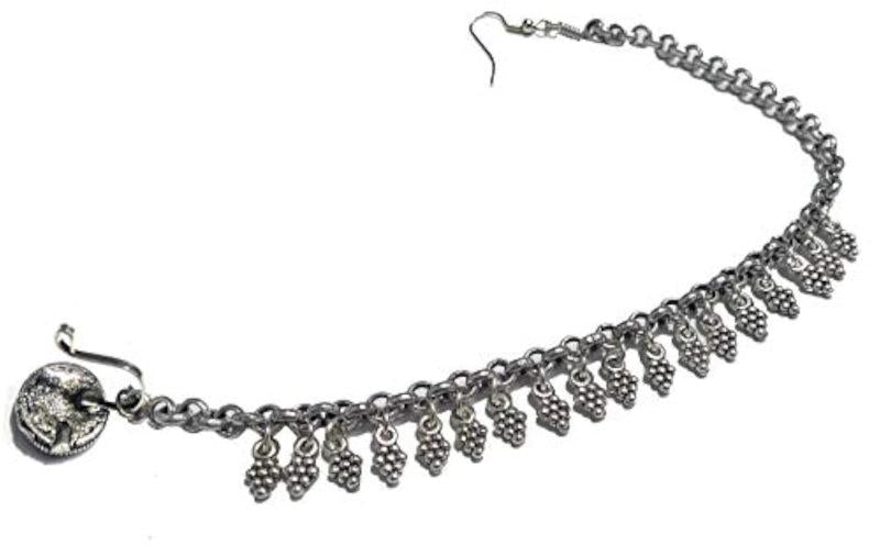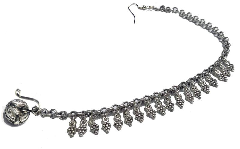 Elegant oxidised silver brass pressing nath in a unique triangle shape design. Perfect for traditional Indian attire.