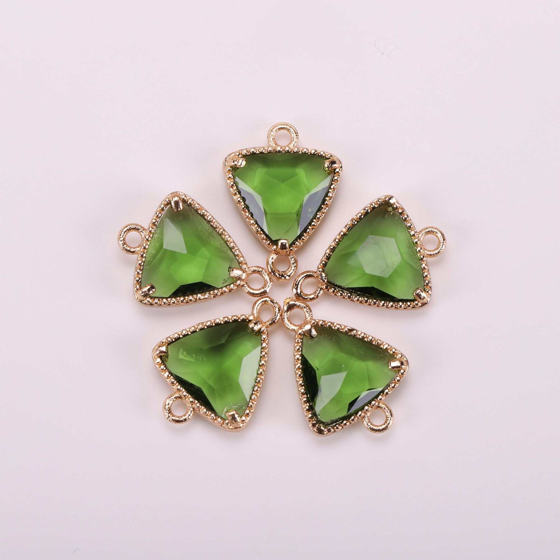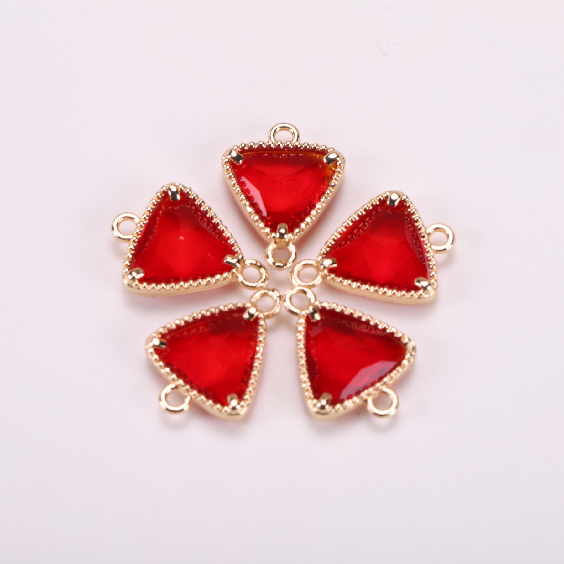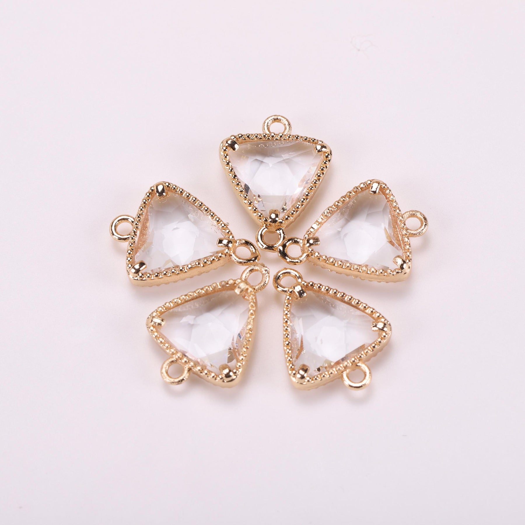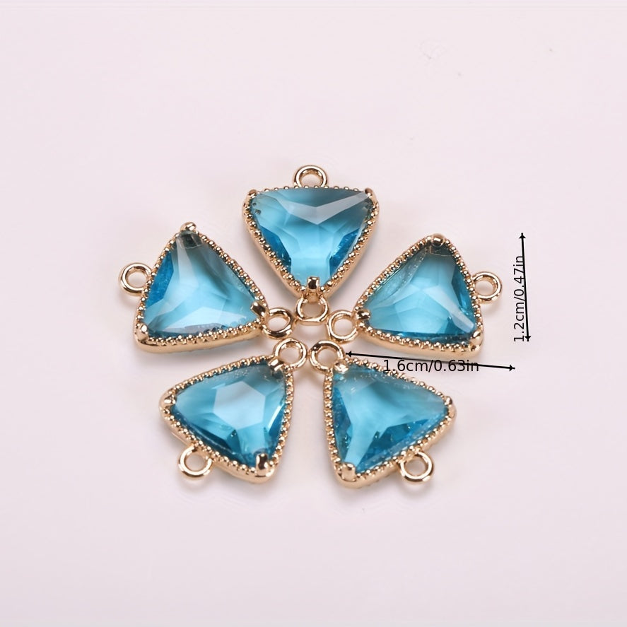 This 5-piece set includes triangle rhinestone decor golden copper pendants with double hanging jewelry connectors.