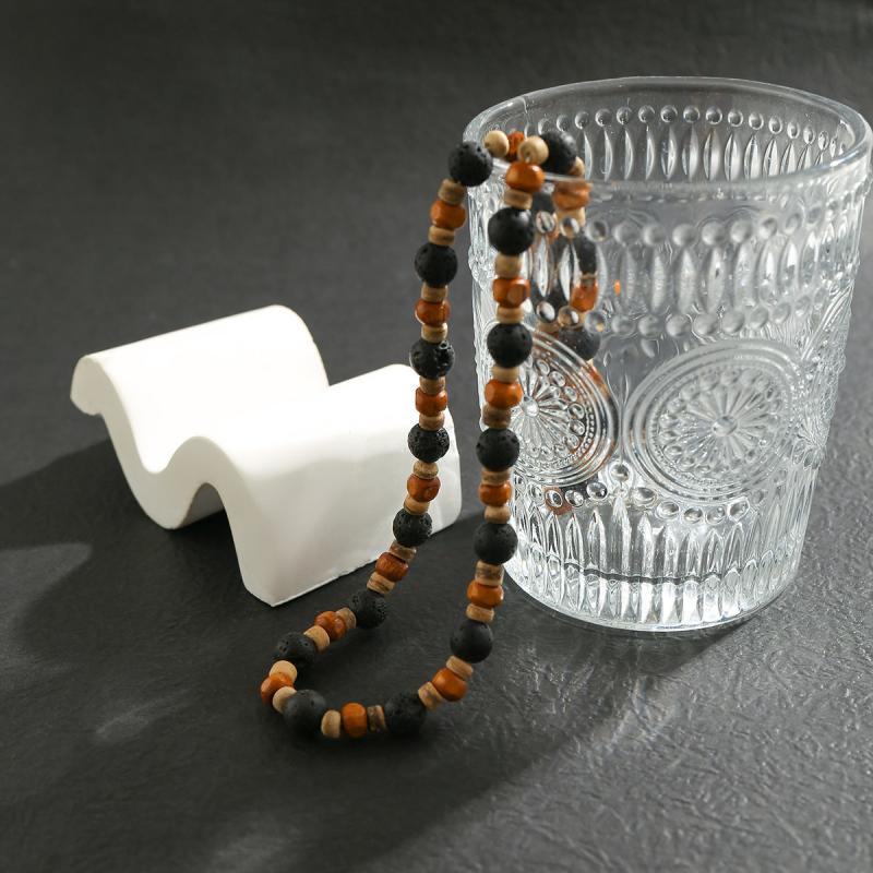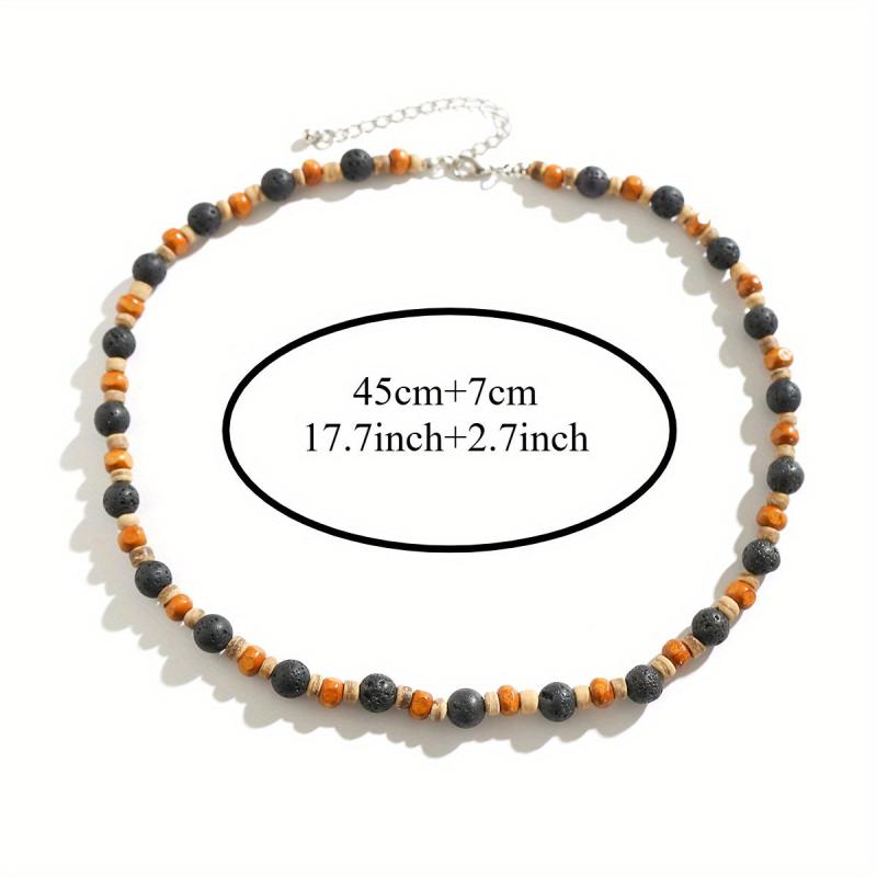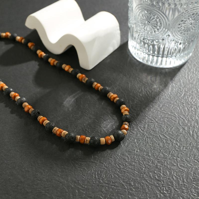 This versatile choker necklace features a mix of tribal-inspired beads in orange and brown colors. It is suitable for both men and women, perfect for everyday wear or special occasions.
