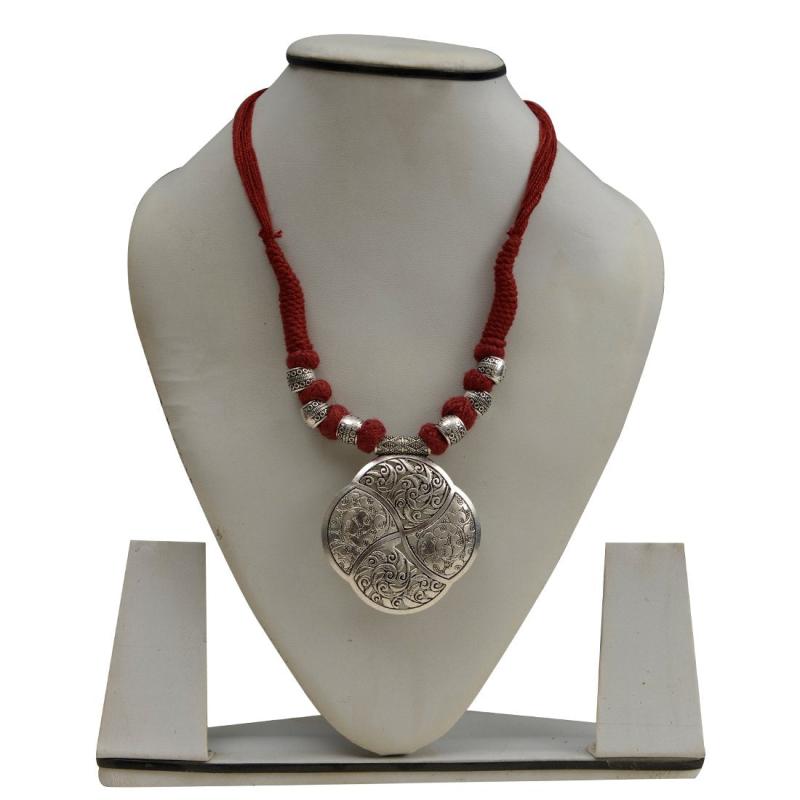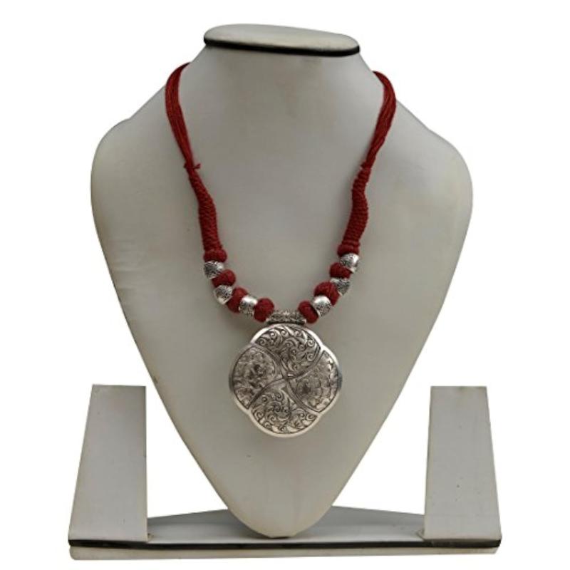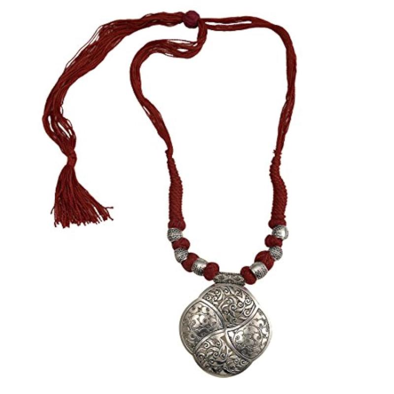 Add a touch of tribal style to your look with this unique pendant necklace. This antique jewellery piece features an oxidised finish for a vintage look.