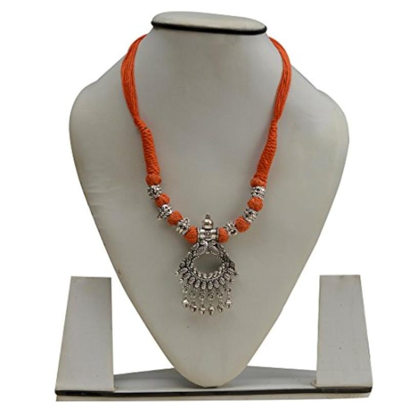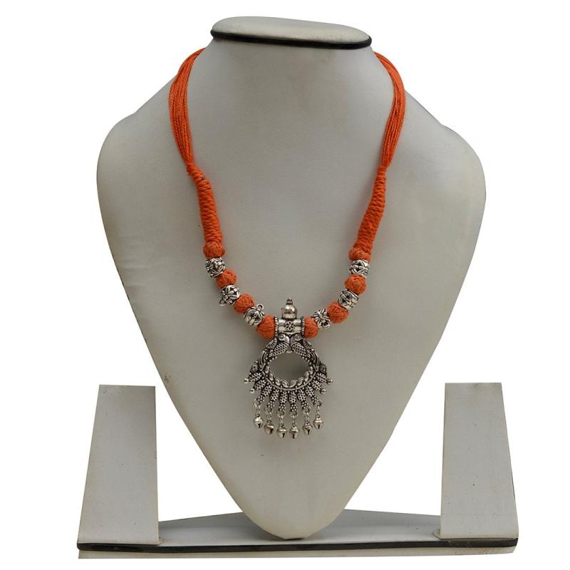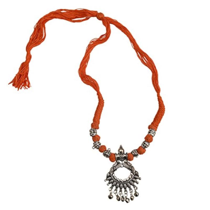 Explore the beauty of tribal art with this stunning oxidised pendant necklace. This unique piece of antique jewellery is perfect for adding a bohemian touch to your outfit.