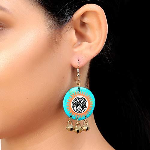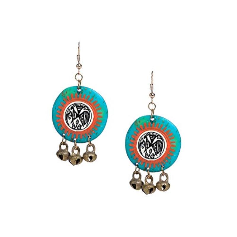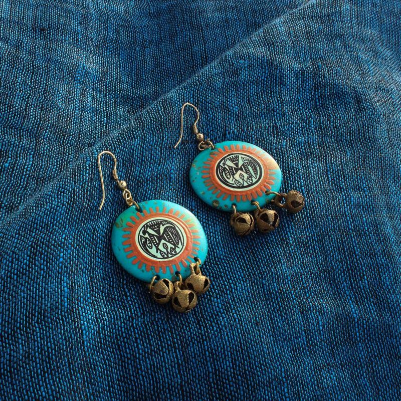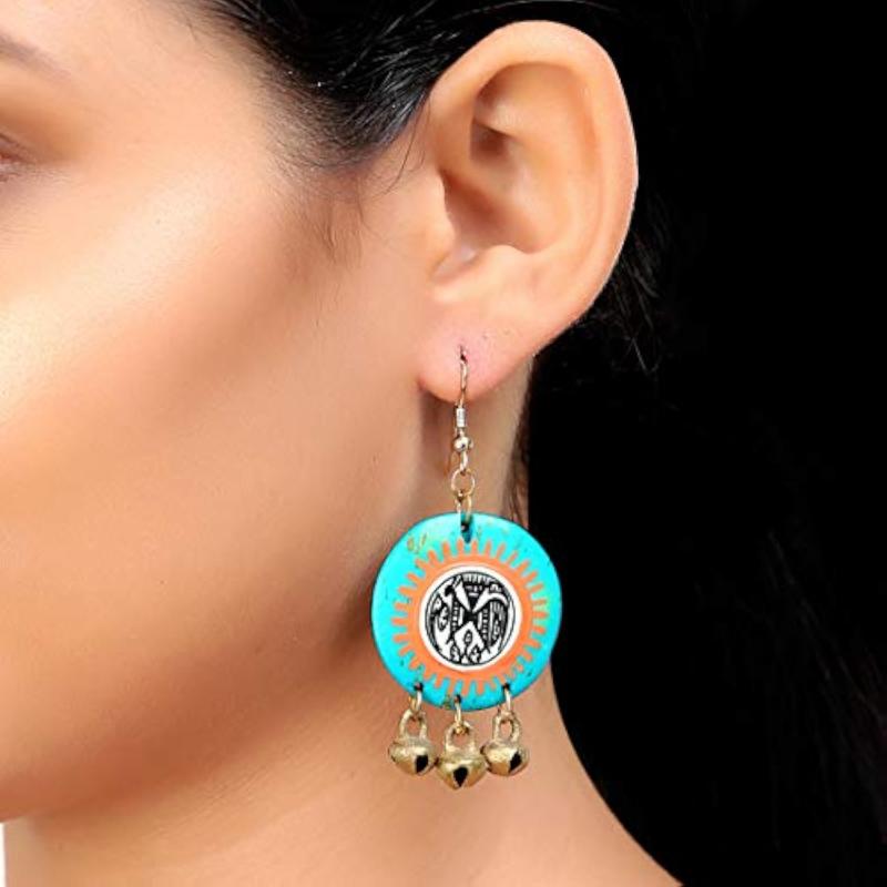 Beautiful hand-painted Warli art earrings made of resin, perfect for pairing with traditional bali jhumkas or danglers.