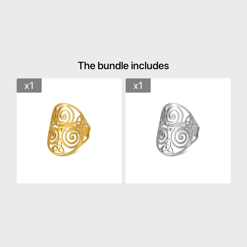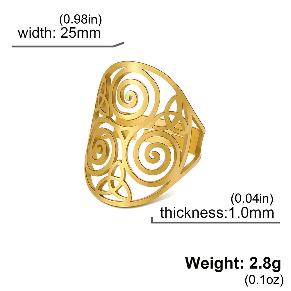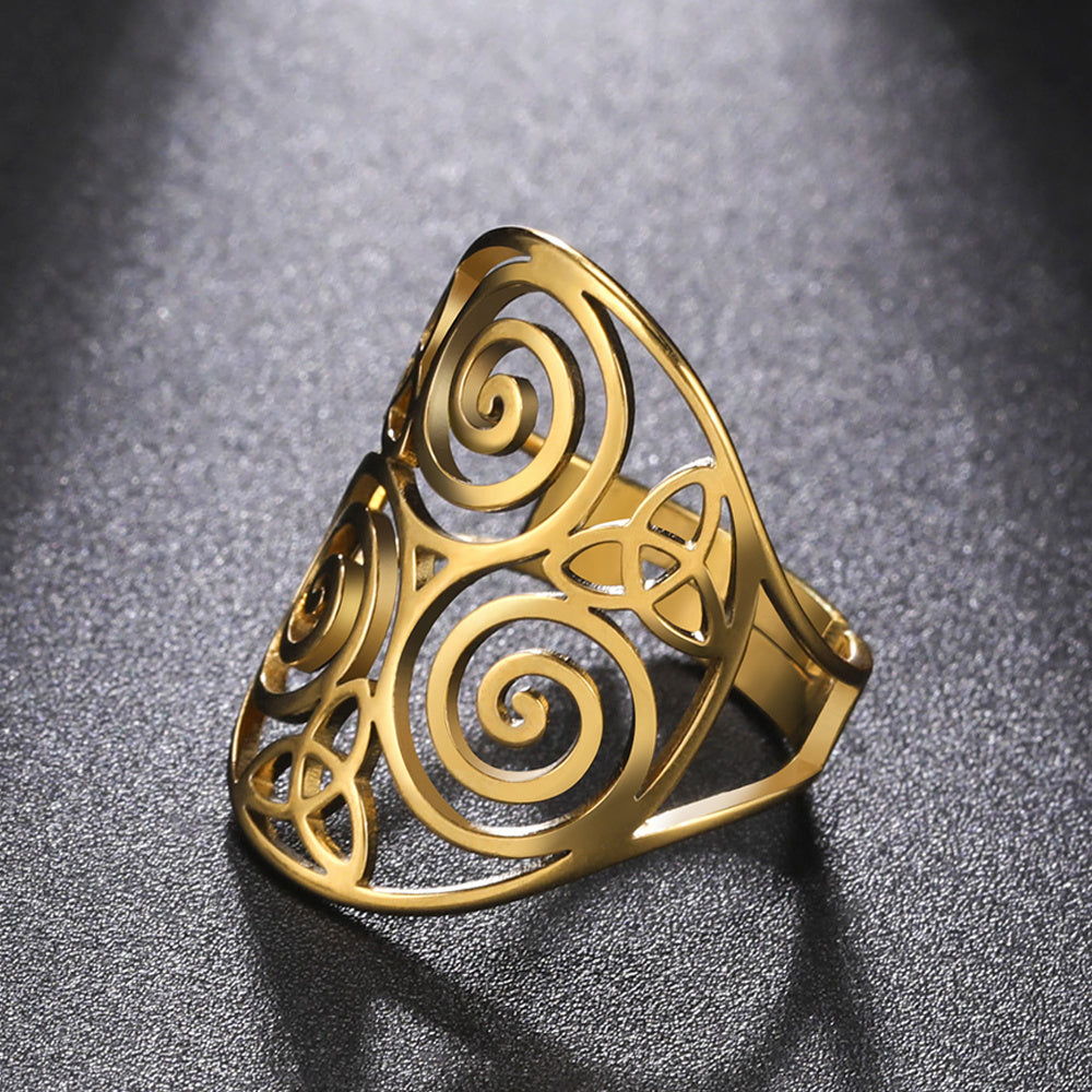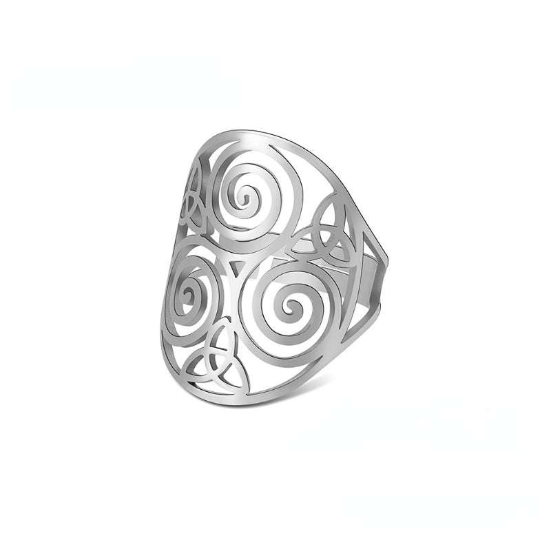This stainless steel ring features the Triskelion Celtics Knot, a symbol of eternity and unity. It is perfect for both men and women.