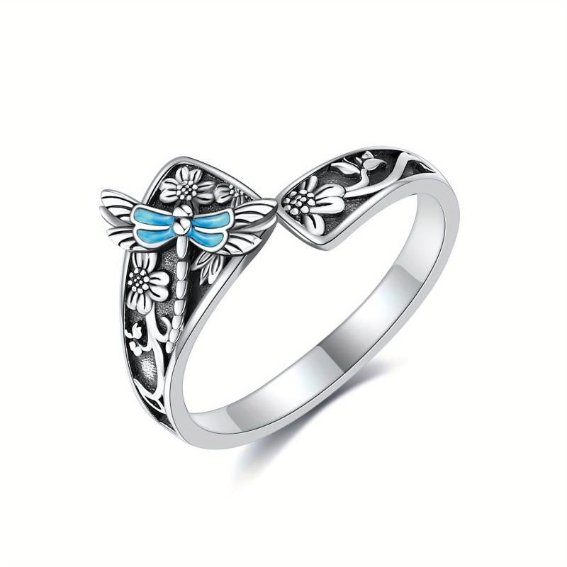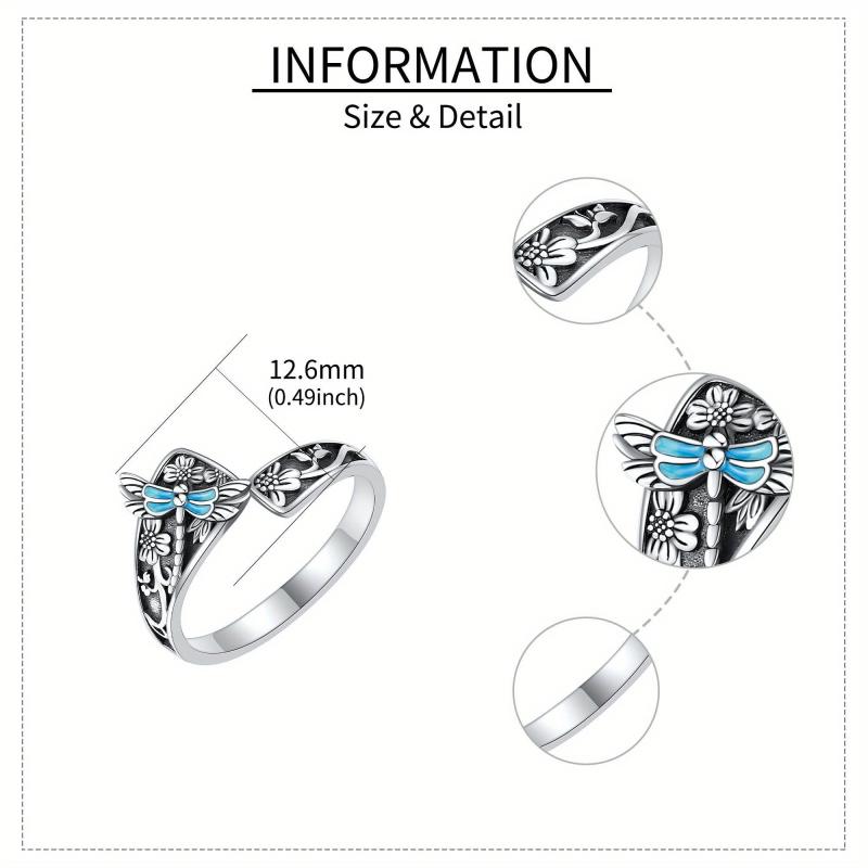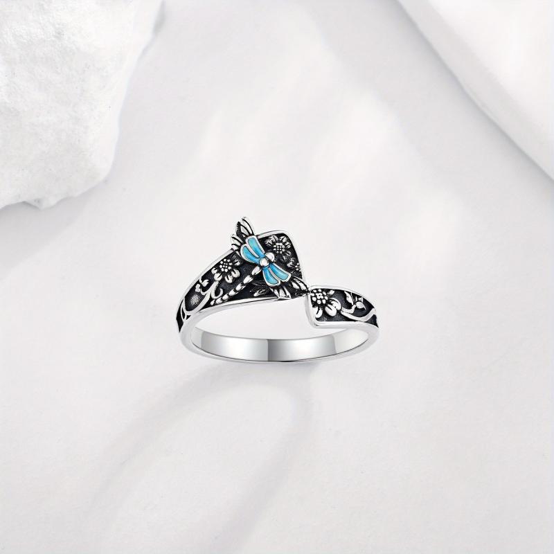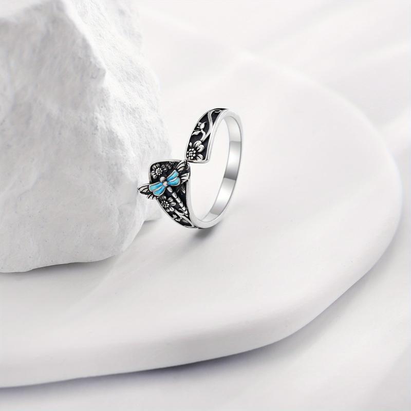 This unique thumb ring features a turquoise dragonfly design crafted from 925 sterling silver. Perfect for dragonfly lovers. Available in multiple sizes.