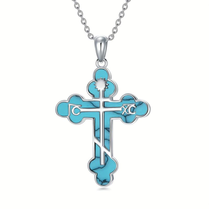 This stunning necklace features an Eastern Orthodox cross pendant made from turquoise obsidian and set in 925 sterling silver. Perfect for both men and women who appreciate religious jewelry.