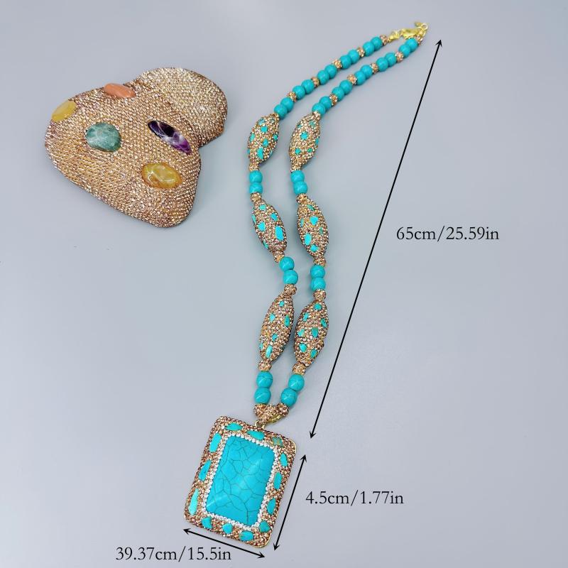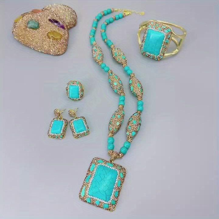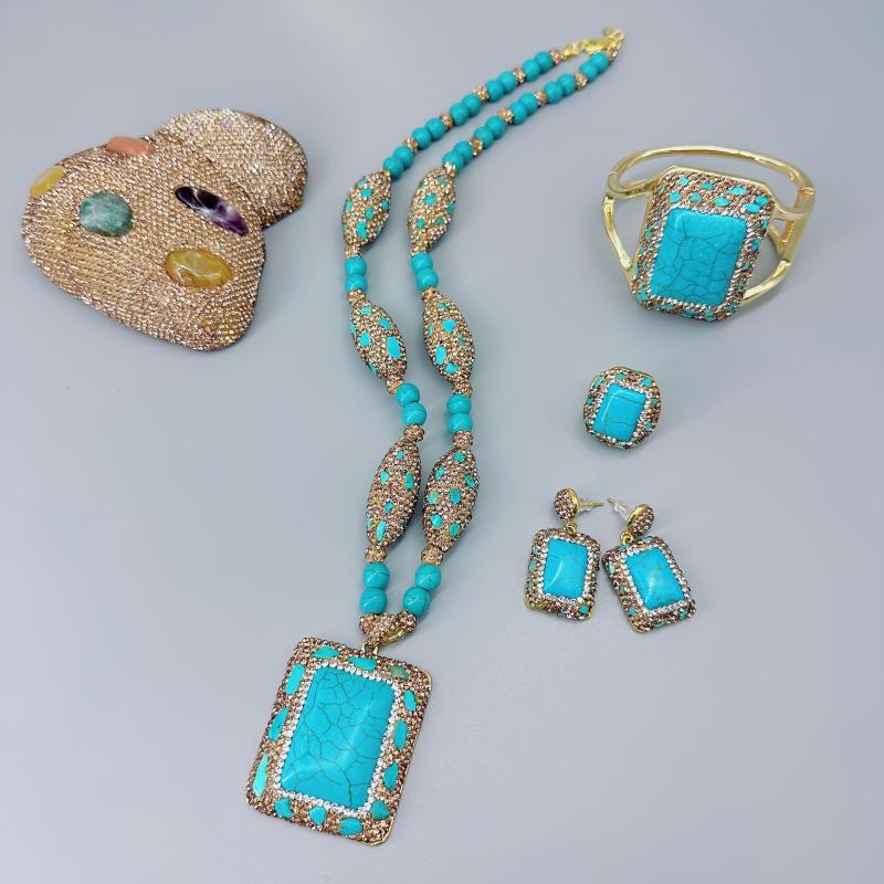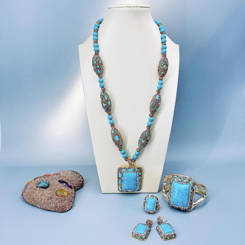 Elegant and unique jewelry set handcrafted from clay with intricate turquoise patterns.