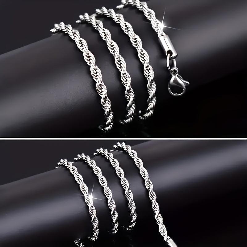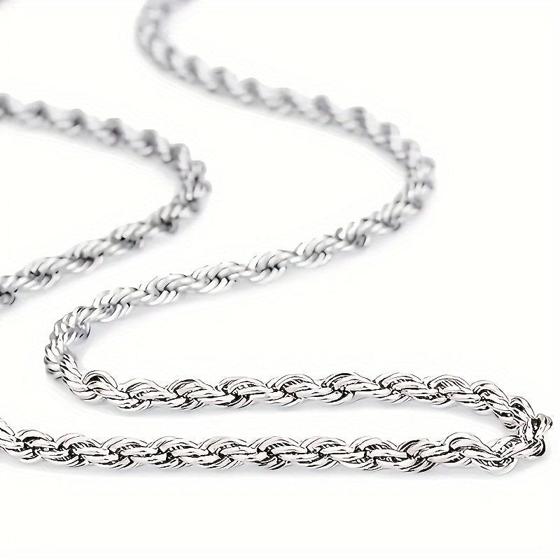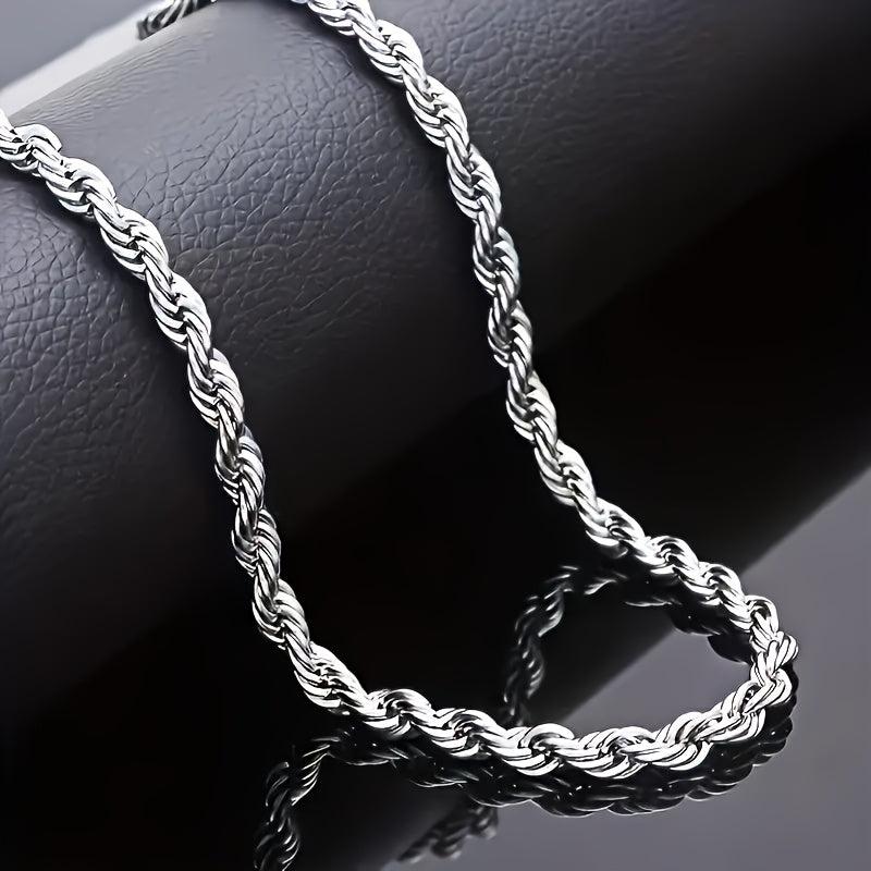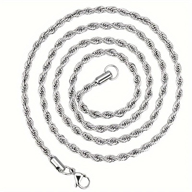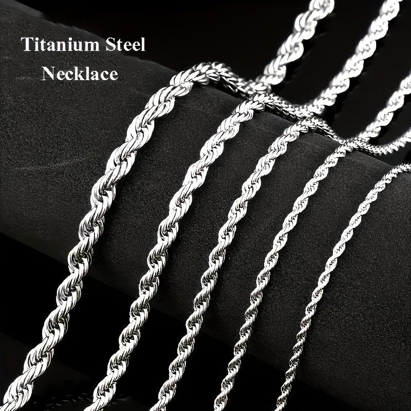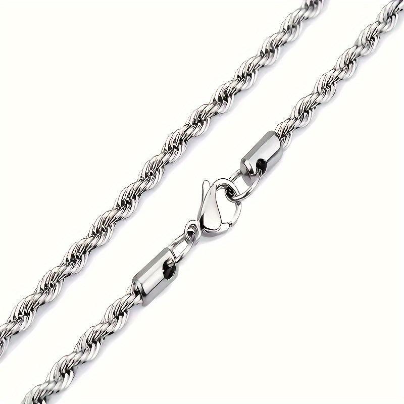 This twisted stainless steel necklace is a modern and minimalist accessory that can be worn year-round. It's a versatile piece suitable for both men and women as a durable addition to casual attire.