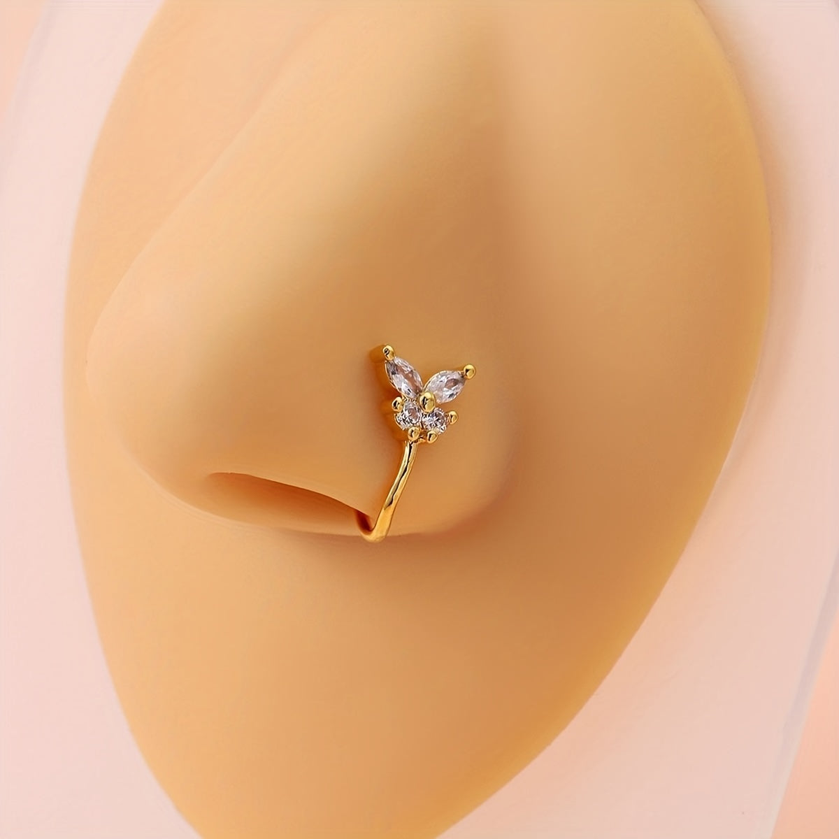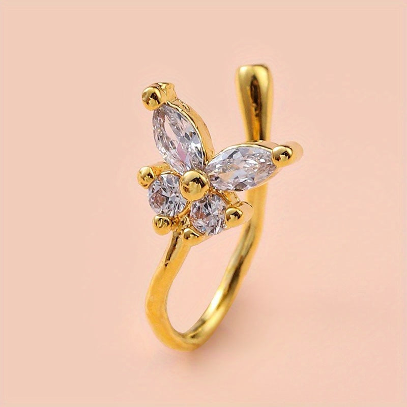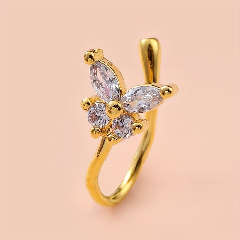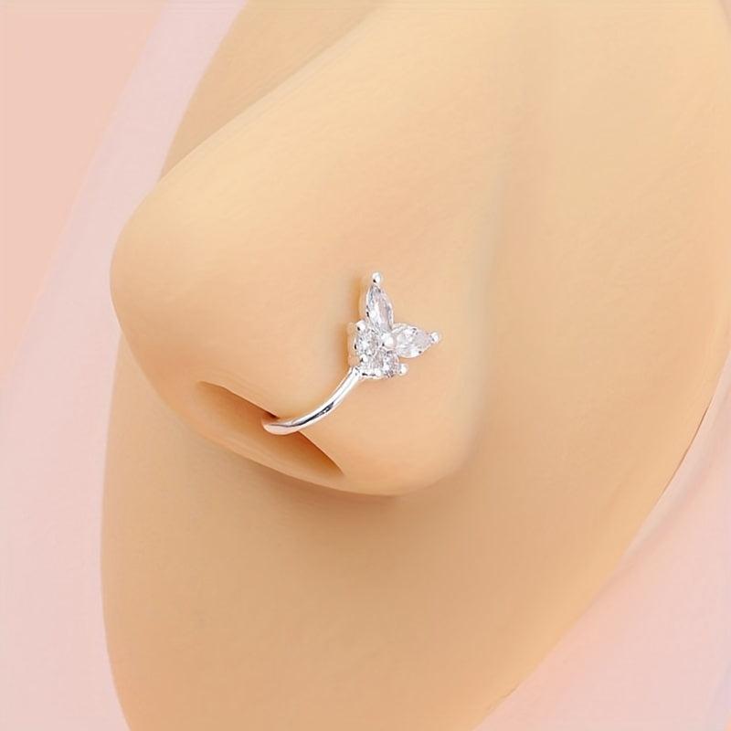 This creative nose ornament features a U shaped nose clip with butterfly and flower designs that adds a retro touch to your look. Perfect for decoration and self-expression.
