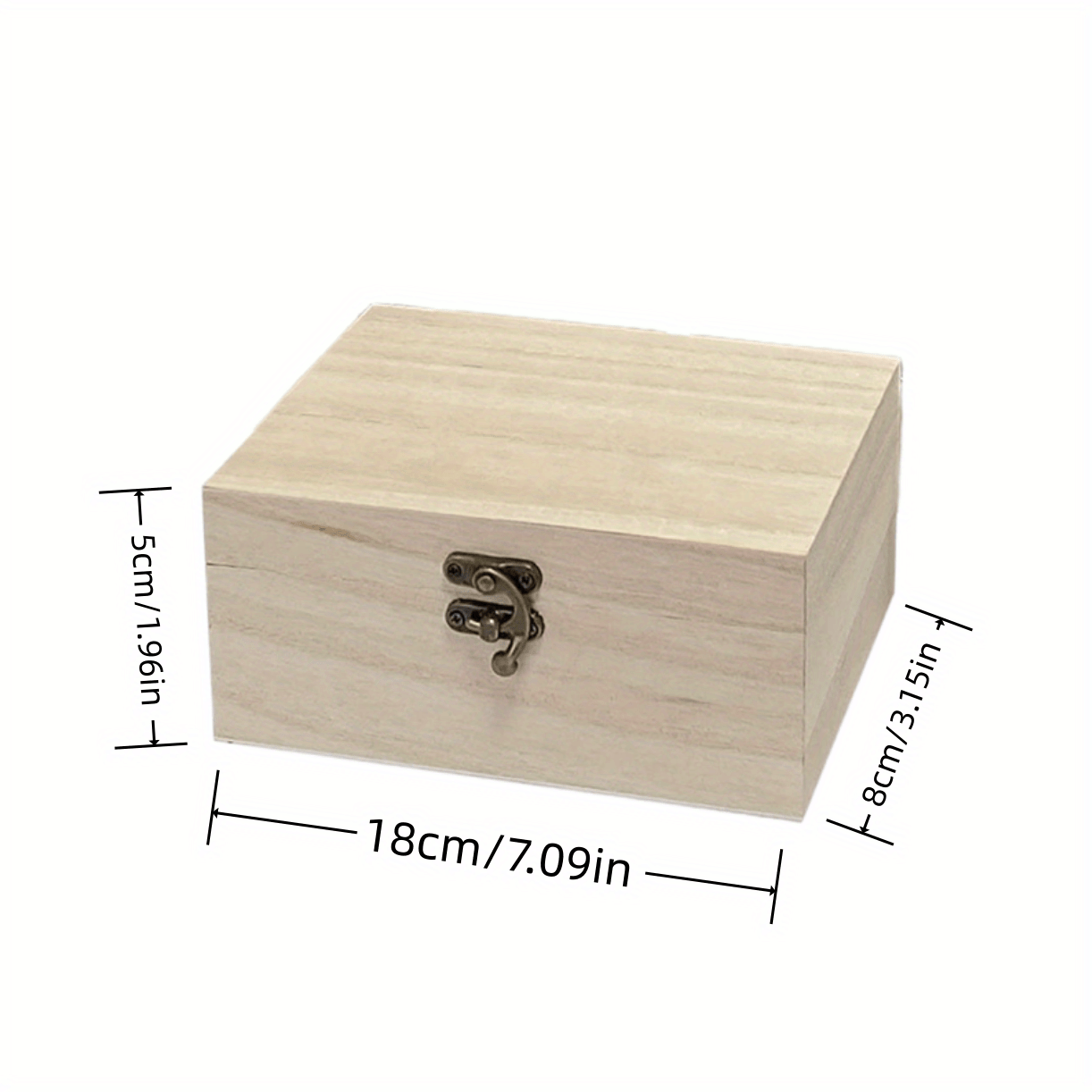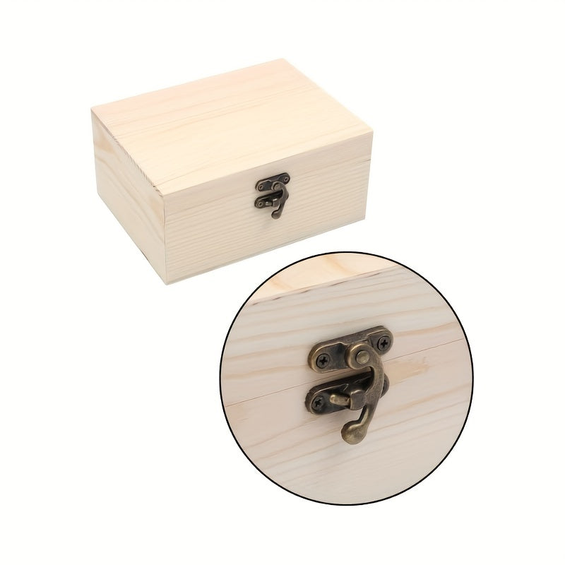This unpainted wooden box is perfect for crafts, storage, and jewelry. With a hinged lid, it measures 7.09x3.15x1.96 inches.
