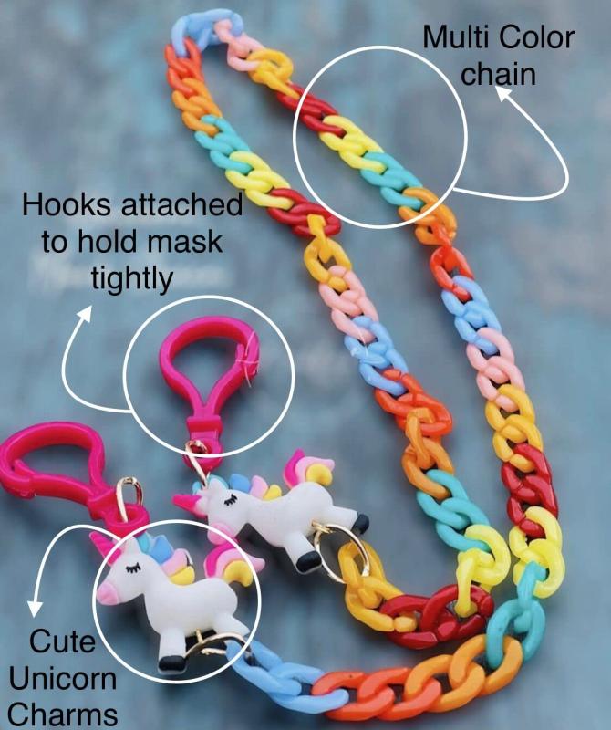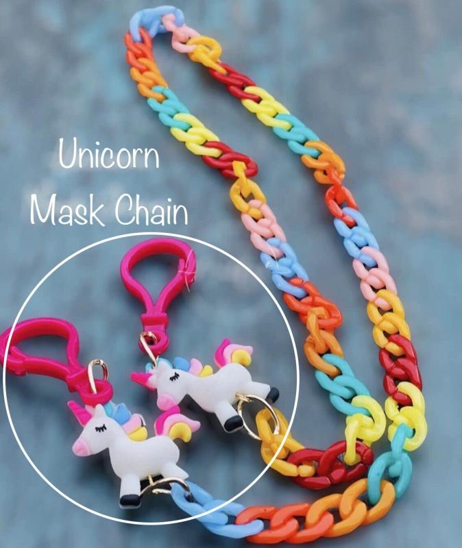 This stylish rainbow lanyard strap is perfect for holding your face mask or glasses, adding a touch of fun with its unicorn design.