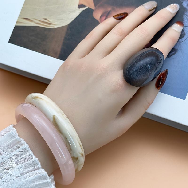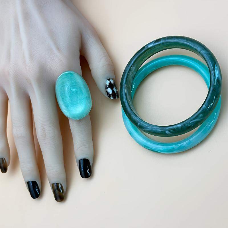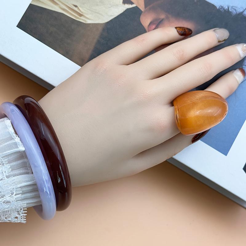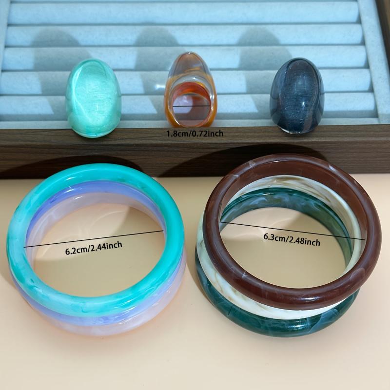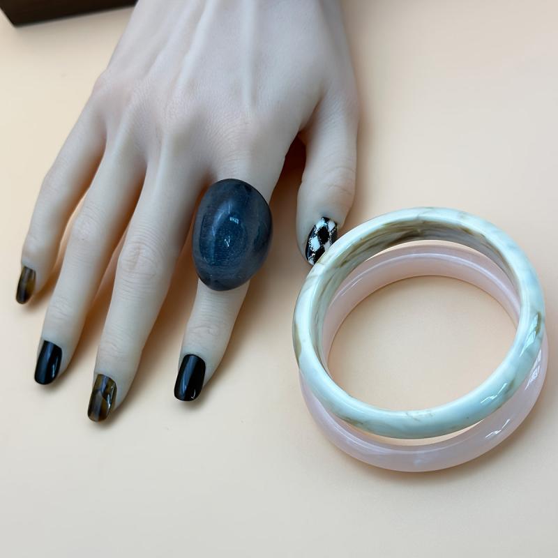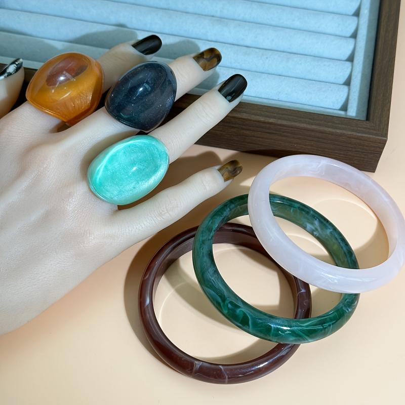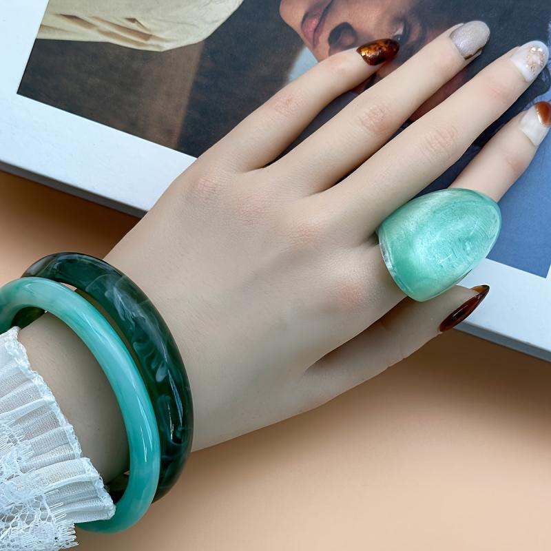 This set includes 1 ring and 2 bracelets with a unique personality gradient texture. The combination set features solid and transparent materials, creating an irregular texture for a stylish look.