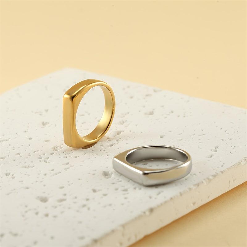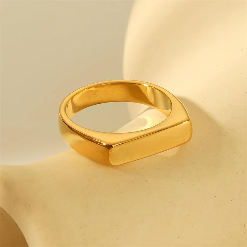 Unisex 18K Gold Plated Stainless Steel Bar Square Ring