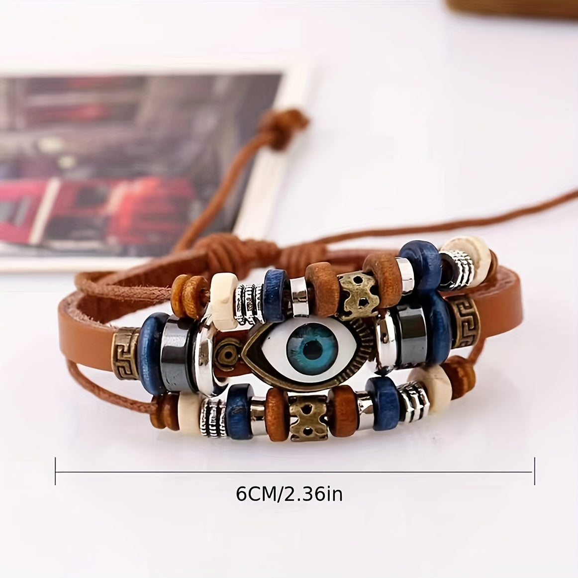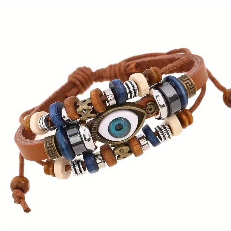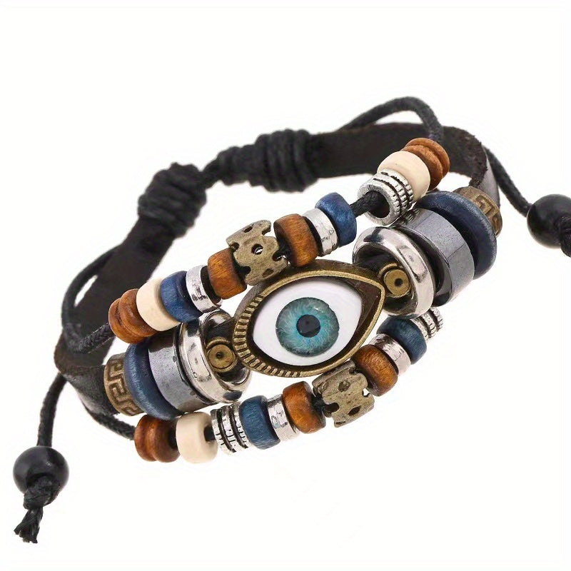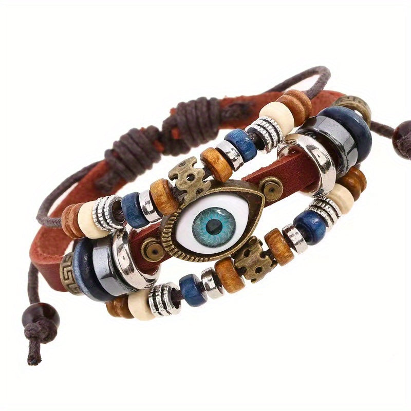 Elegant bracelet featuring beaded eyes design made of faux leather. Ideal for both men and women. Perfect for a European and American jewelry style.