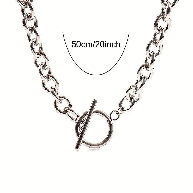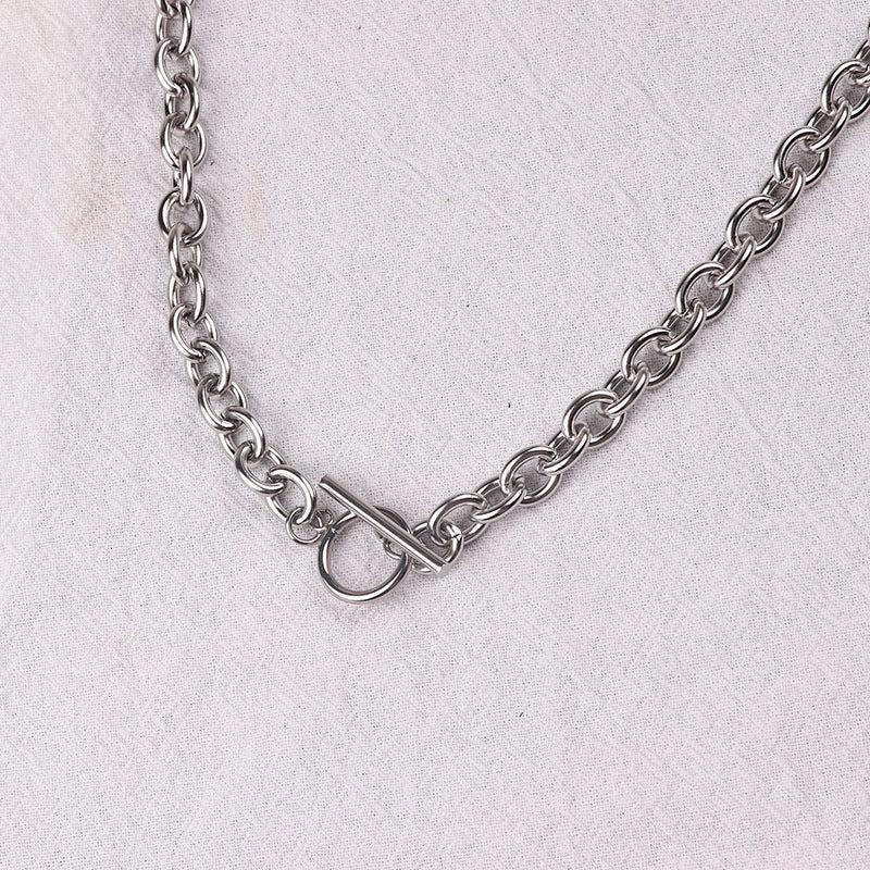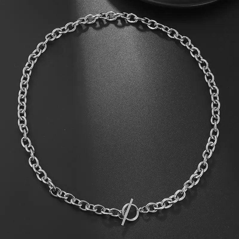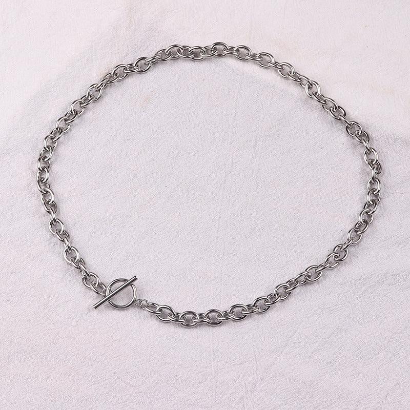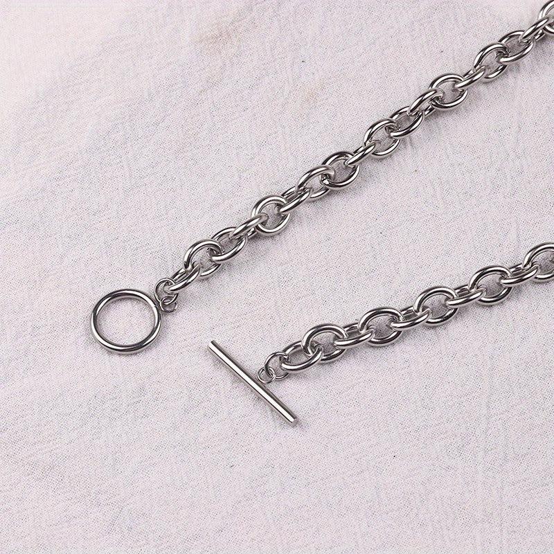 Trendy stainless steel necklace set with OT toggle clasp, perfect for couples. No pendant, great for street style and sweater chain.