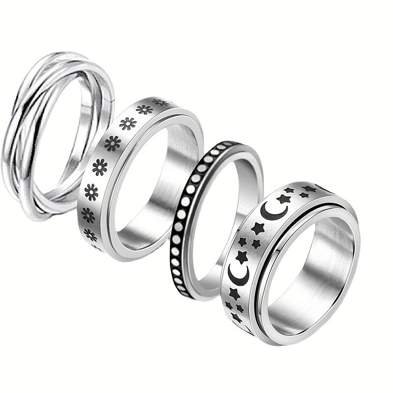 This unique and stylish ring features a rotating design with star and moon motifs, perfect for meditation and relaxation. Made of high-quality titanium steel, it is durable and hypoallergenic.
