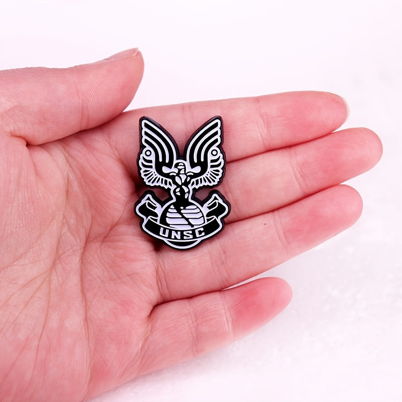 Vintage alloy brooch featuring the emblem of international peace and security, perfect for accessorizing bags, clothing, collars, and hats. Makes a thoughtful gift.