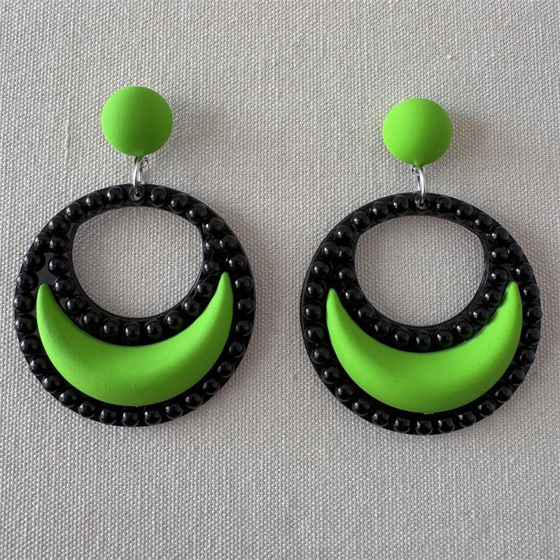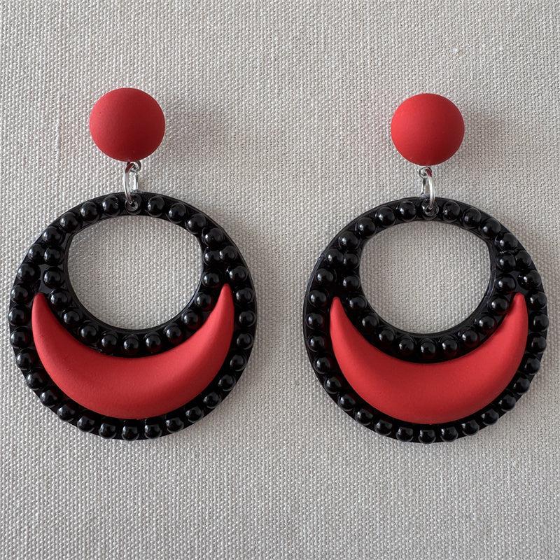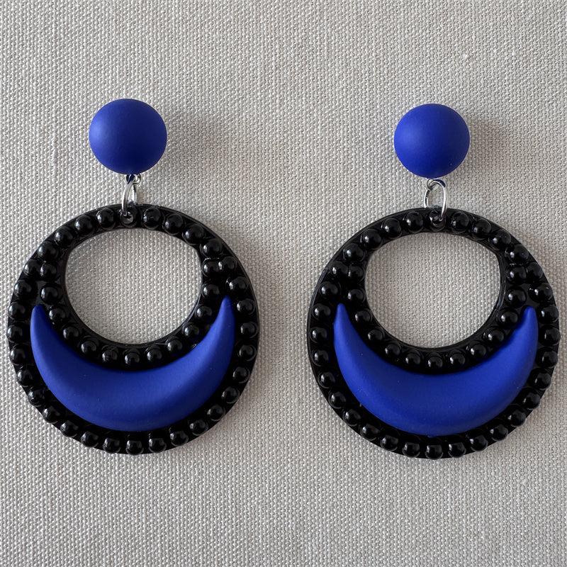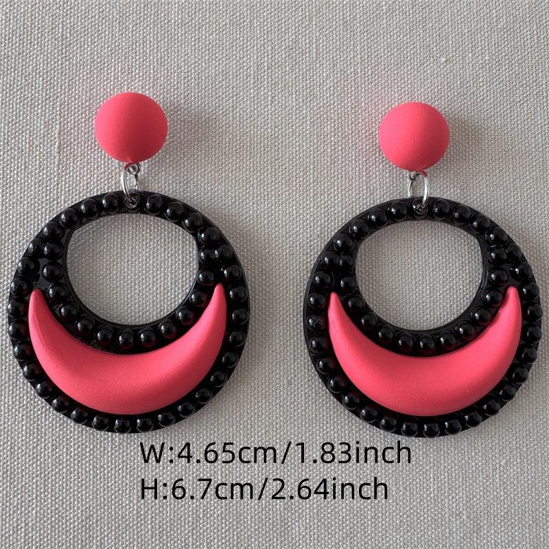 Urban Crescent & Circle Dangle Earrings - Royal Plastic & Iron Ear Needle