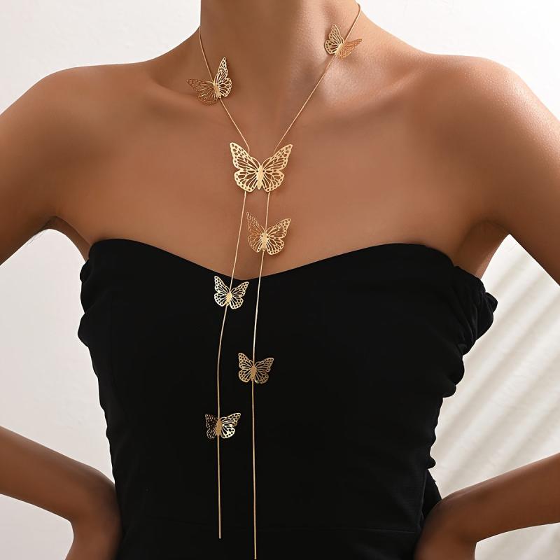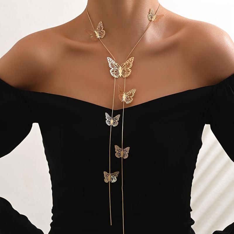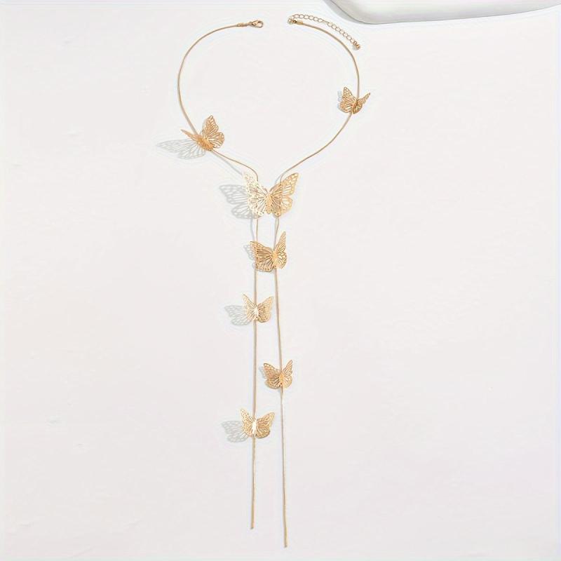 Elevate your style with this minimalist pendant necklace featuring a V shape butterfly design and stylish tassel. The golden jewelry accents add a touch of elegance, making it the perfect accessory for any occasion.