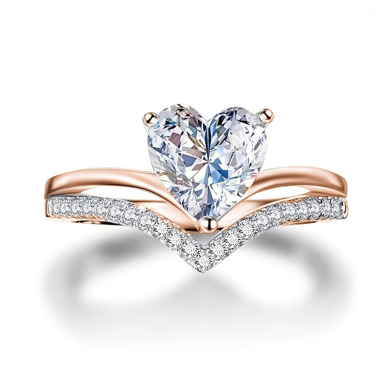 This elegant solitaire ring features a heart-shaped zircon stone with a v-shaped design. Perfect for women's engagement or banquet, this two-layer ring is a stunning piece of jewelry that makes a great gift.
